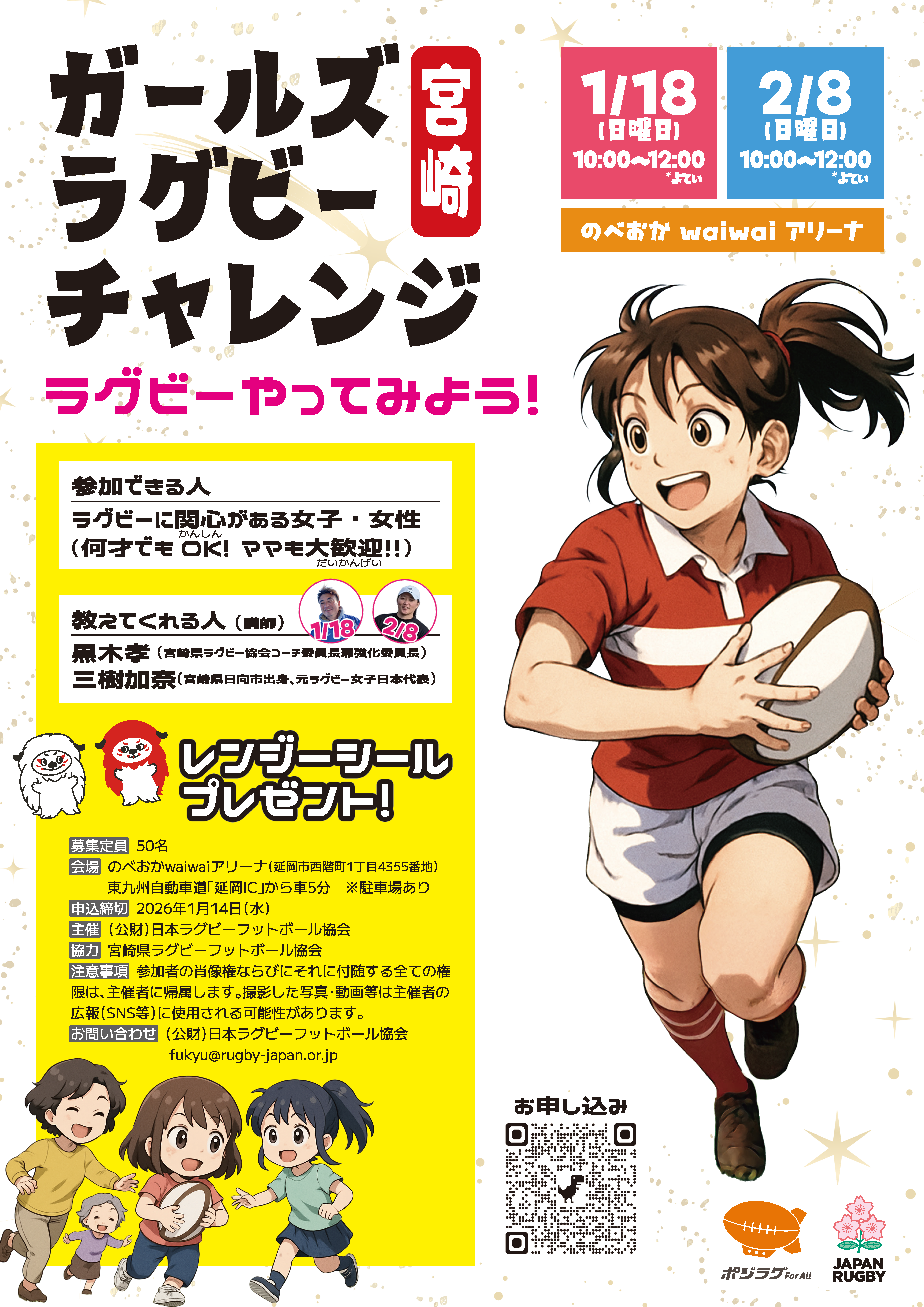 <2025年度宮崎県女子活動拠点事業「ガールズラグビーチャレンジ in 宮崎」実施概要>