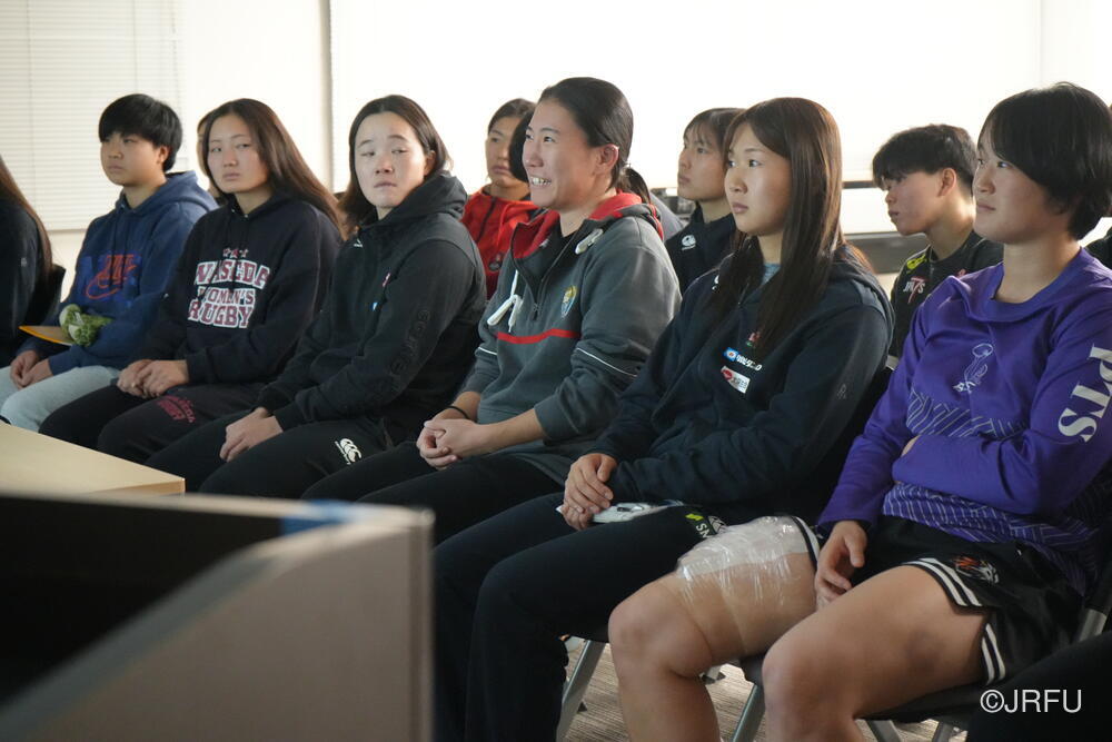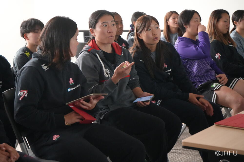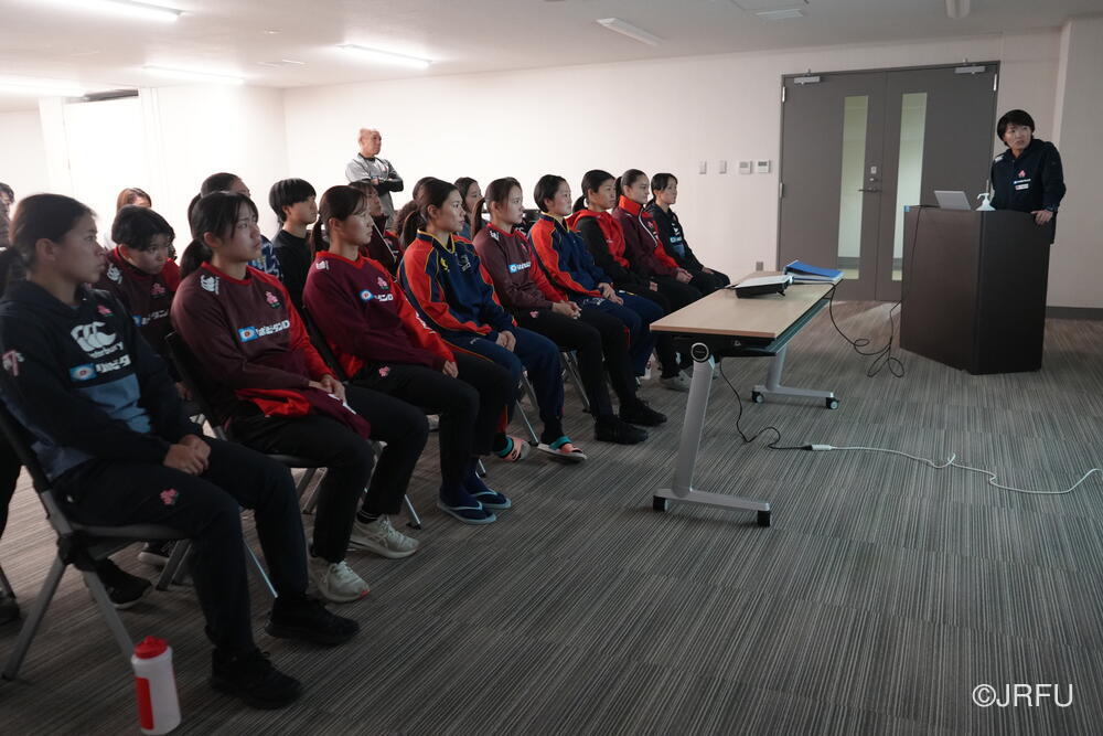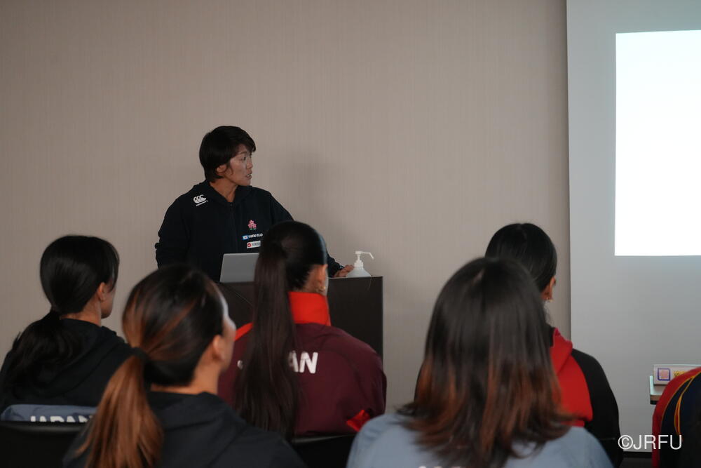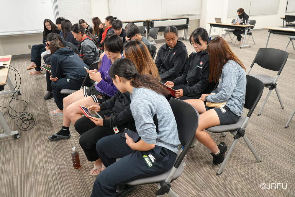 夕方には再びチームミーティングを行い、ワールドシリーズの映像を観ながら、サクラセブンズの特長を探し、言語化しました。短い合宿の中でも、言語化したことを意識することでプレーが変わります。明日からのフィールド練習がとても楽しみです。