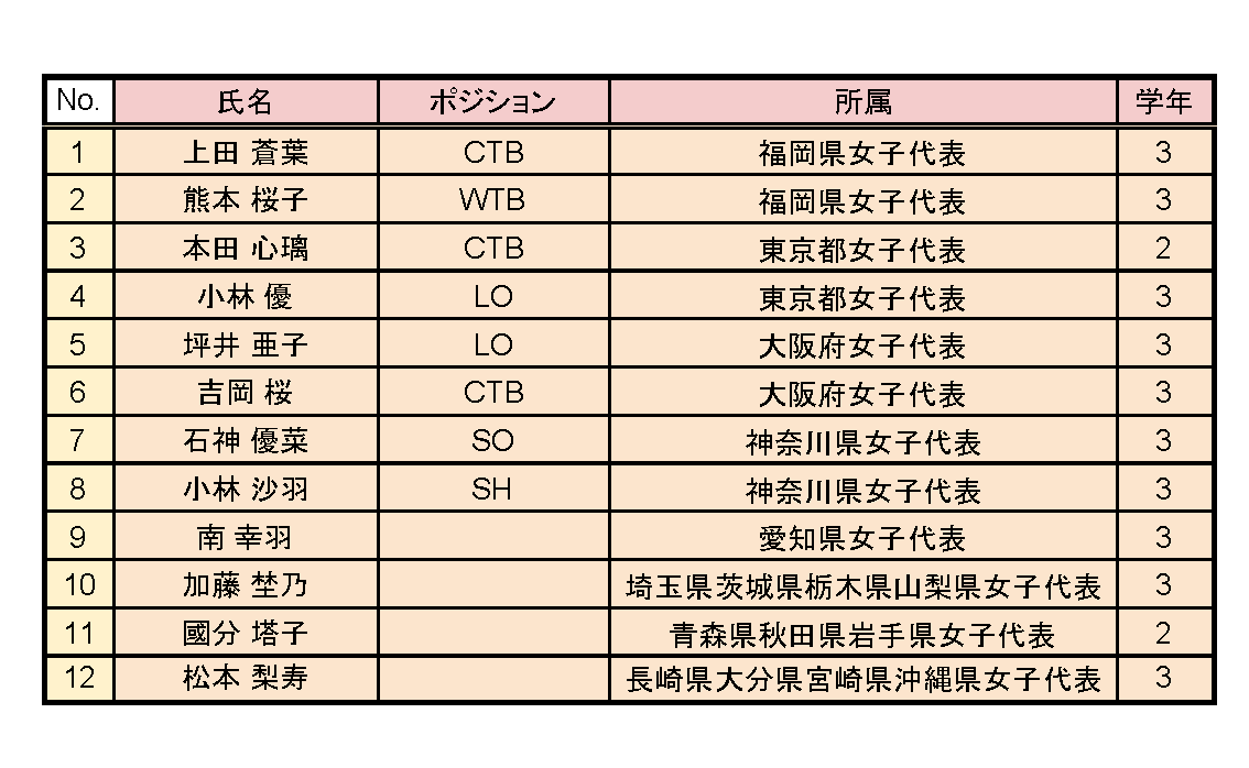 今大会、優秀選手として男子29名、女子12名の選手を選出させていただきました。今回、選出されなかった選手の中にも非常に才能豊かな選手が数多く見られました。毎年、この大会から巣立っていった選手が来年以降の全国高校ラグビーで活躍する姿、またその先に桜のジャージを着て世界と戦う姿を見るとワクワクします。