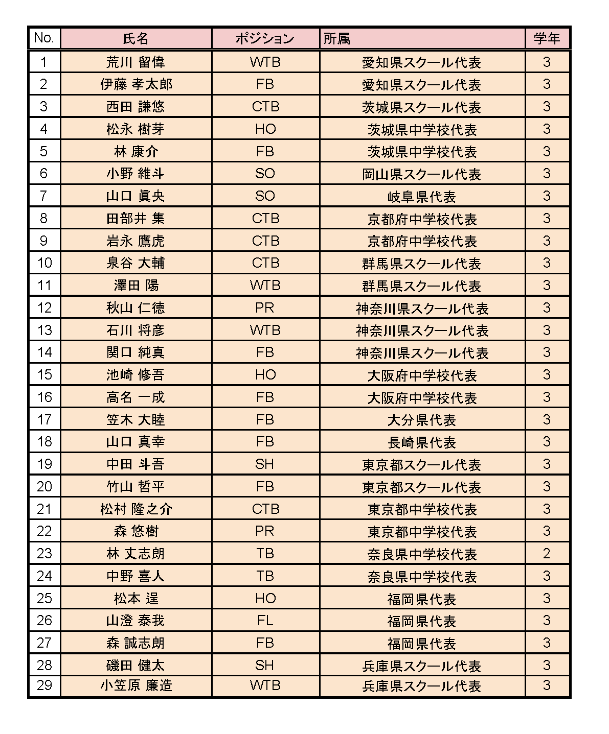 第31回全国ジュニア・ラグビーフットボール大会 優秀選手