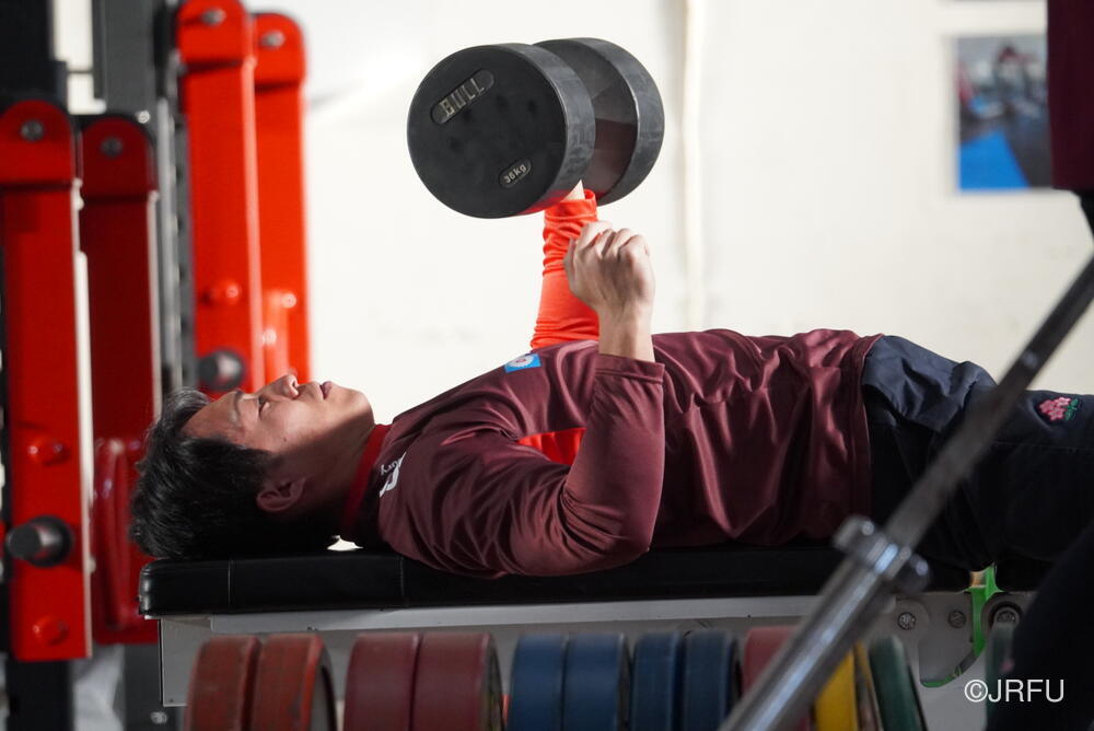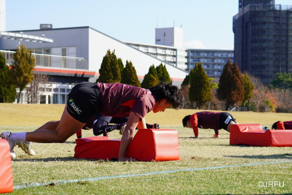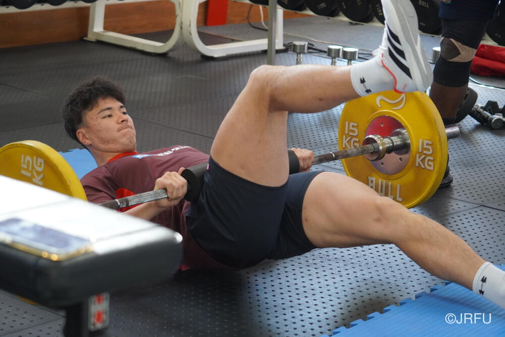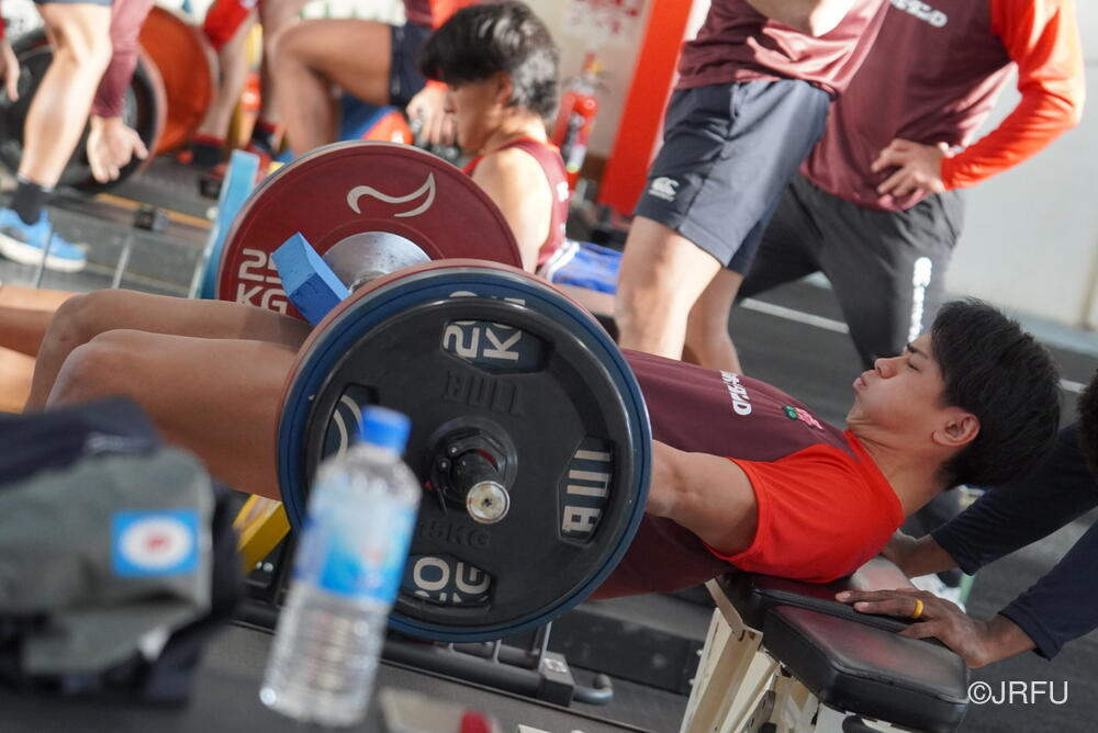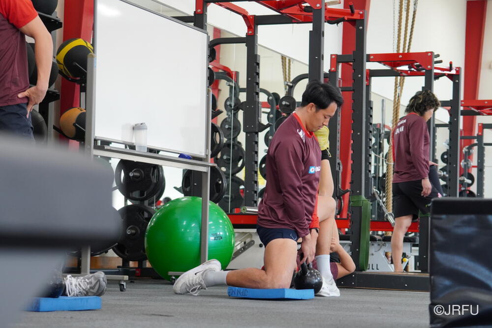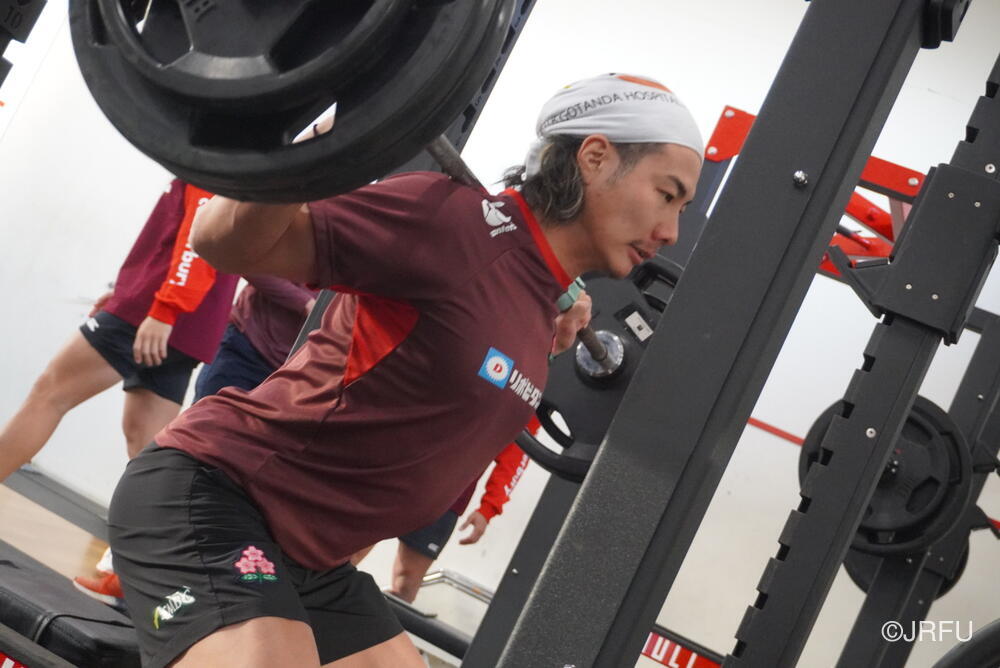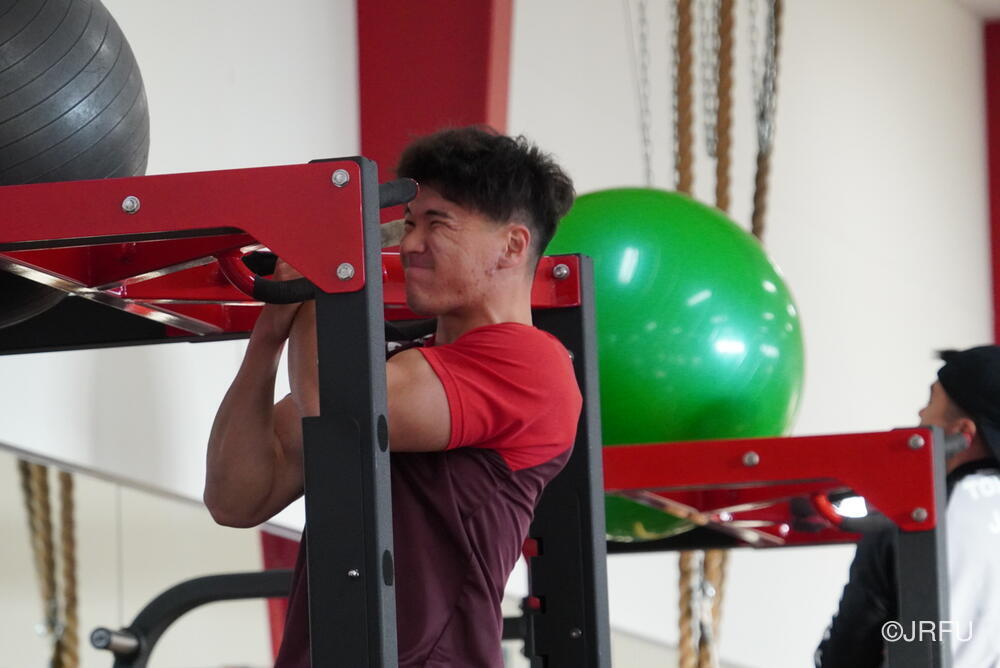 初日に続き、MAX測定が未完了のメンバーは自身の現在地を確認し、すでに測定を終えているメンバーは上半身を中心としたメニューでフィジカルを強化しました。