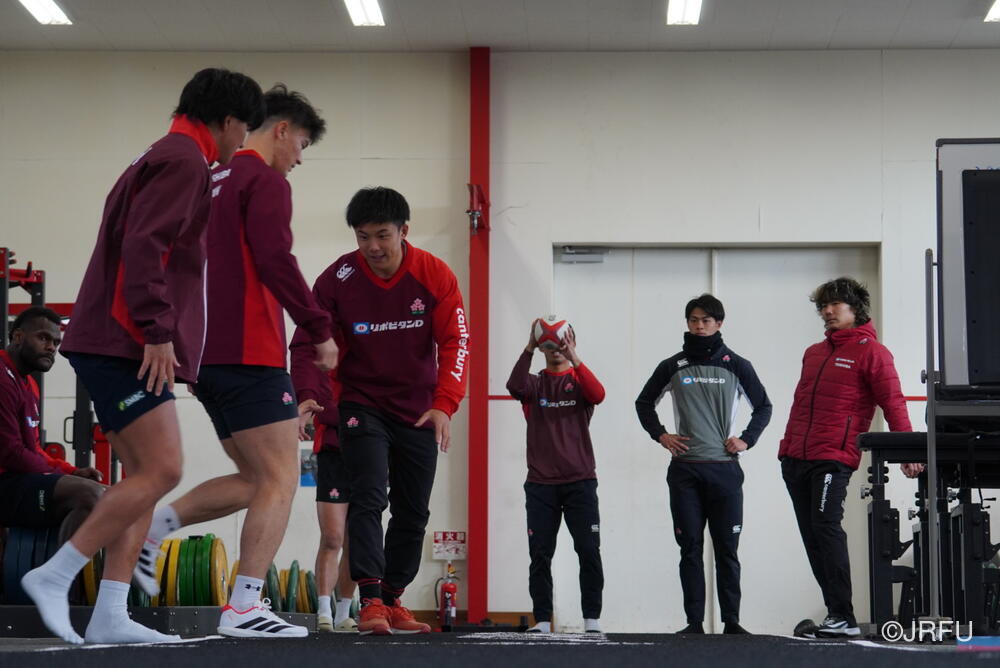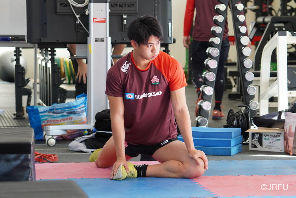 福岡合宿最終日となった本日は、午前中にジムにてアクティブリカバリーを実施しました。連日のトレーニングによる疲労を抜きつつ、いよいよ始まるフィジー遠征に向けて、個々のコンディショニングを行いました。その後はチームミーティングを行い、練習における収穫や改善すべきポイントを全員で振り返りました。