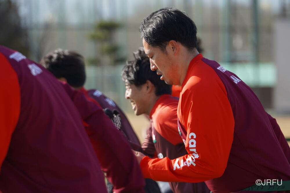 初日の本日は、前回合宿同様に新たに参加するメンバーを集めて、コンディショニング確認や柔軟性測定を実施。
