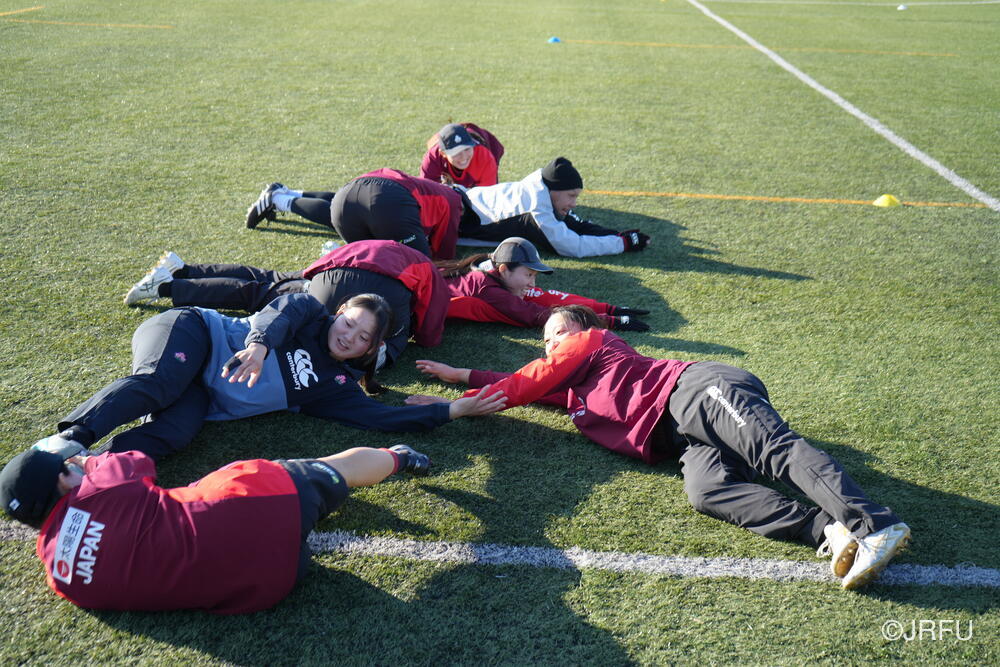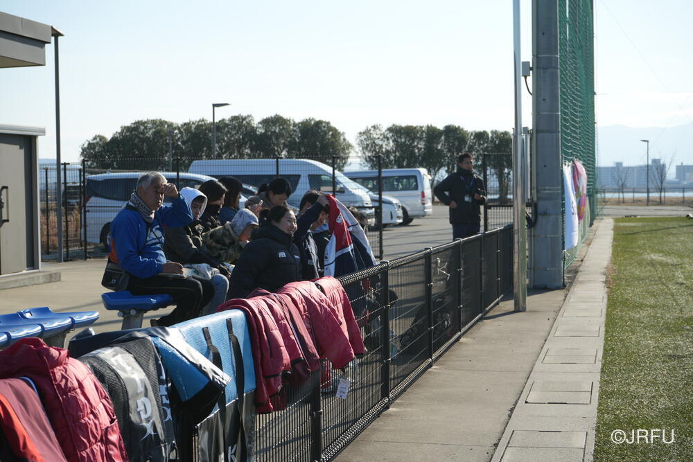 今日は県外からも見学にいらっしゃる方がいました。合宿を行う先々でサクラセブンズを応援してくださる方を近くに感じることができ、大変嬉しく思います。また、連日四国大学女子ラグビー部の選手たちが見学にいらっしゃり、フィールドの片づけ等のサポートもしてくださっています。寒い中、本当にありがとうございます。