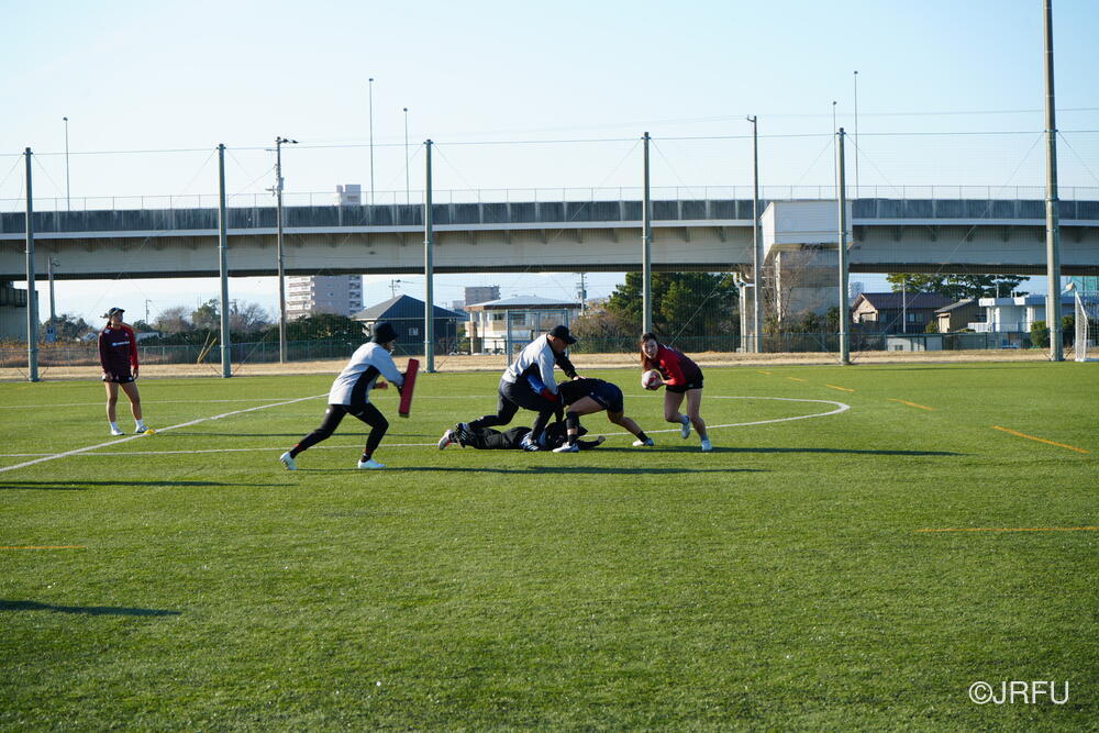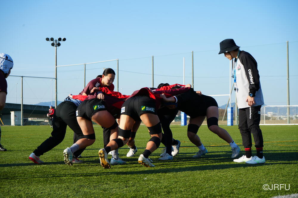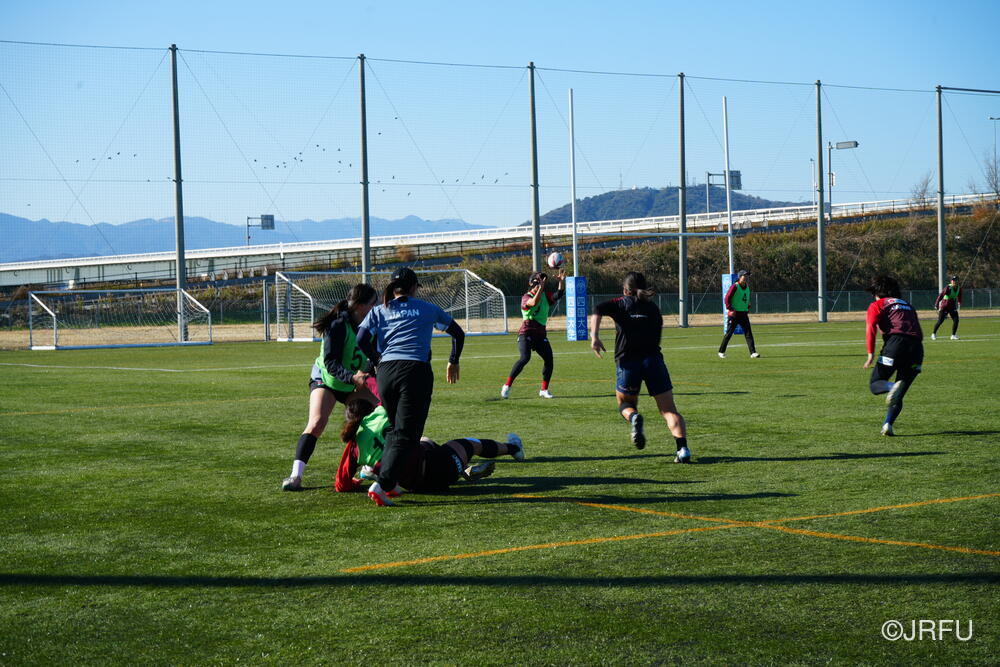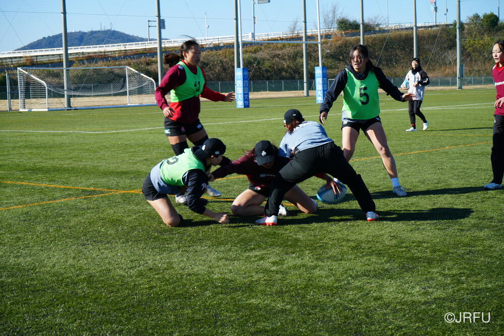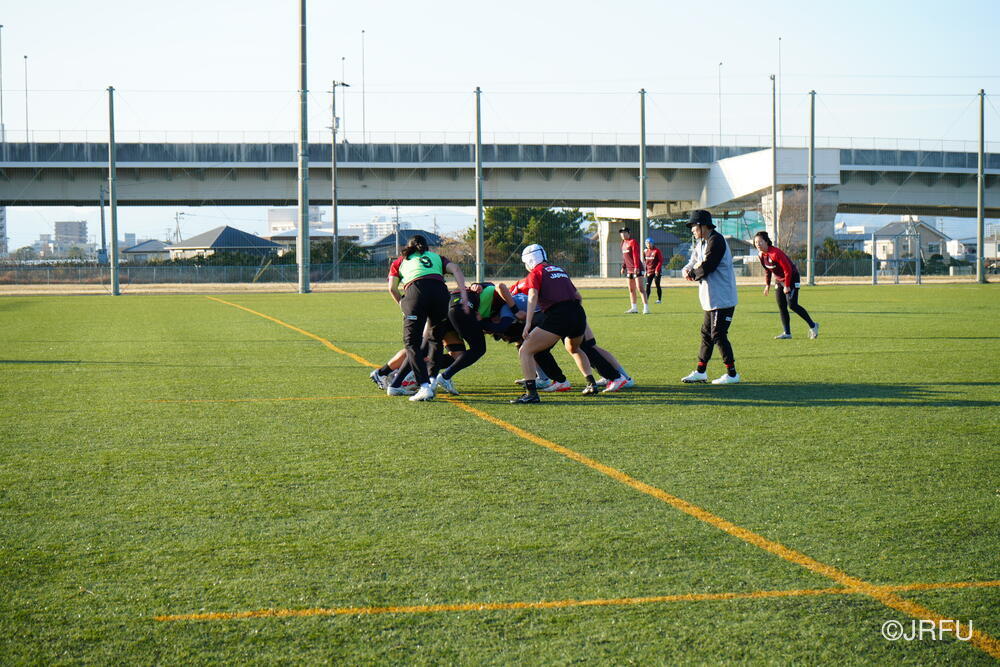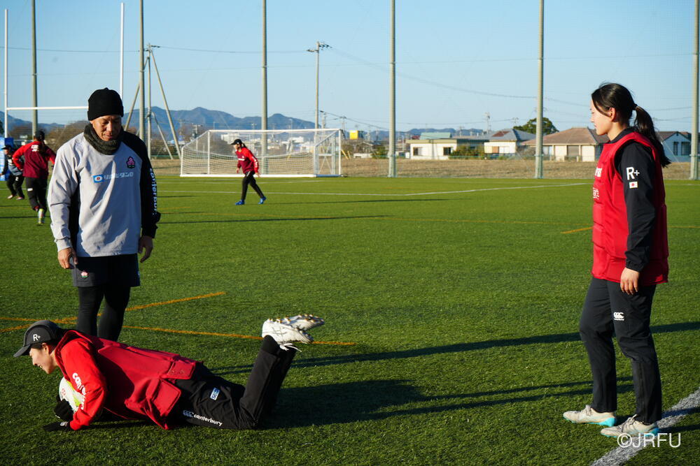 各セッション終わりの試合形式では、音が鳴るほどしっかりと体を当ててコンタクトしているシーンが多く見られました。また、ユニット練習では、FWは荻原コーチ、BKは野々村コーチにそれぞれ丁寧にご指導いただきました。