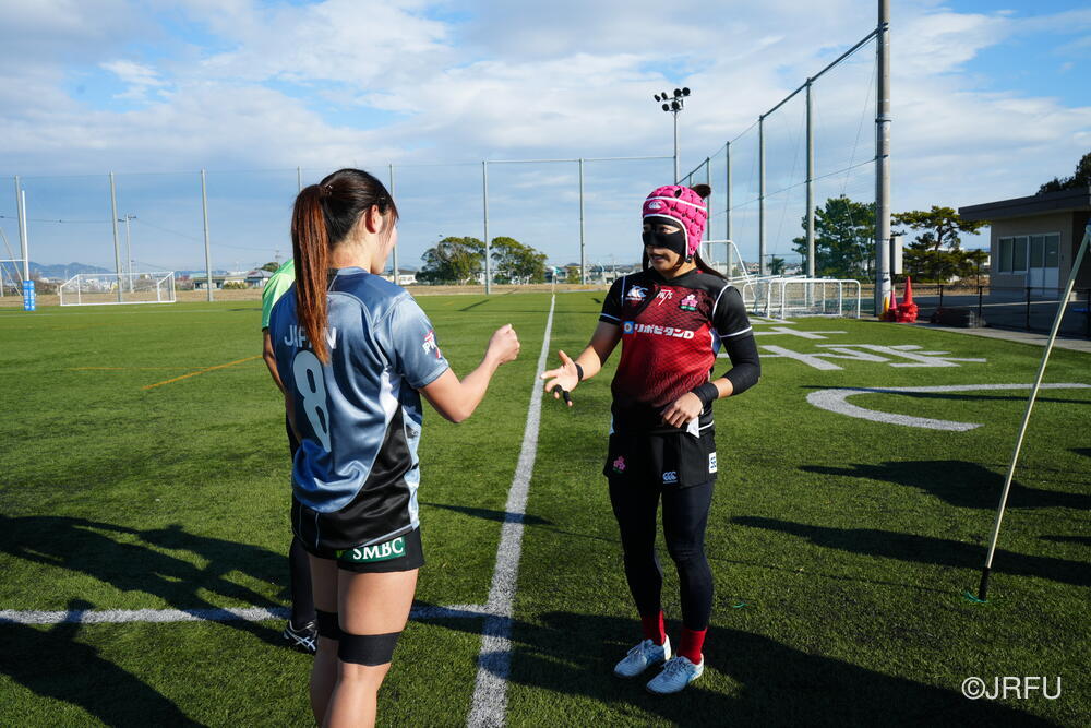 合宿4日目。今合宿最も寒い日で、徳島では珍しいとされるあられが朝から降っていました。しかし、今日は地元の女子ラグビー選手たちと繋がる大切な日。SDSの選手たちは分厚いウォームジャケットに身を包み、元気にフィールドへ出かけていきました。