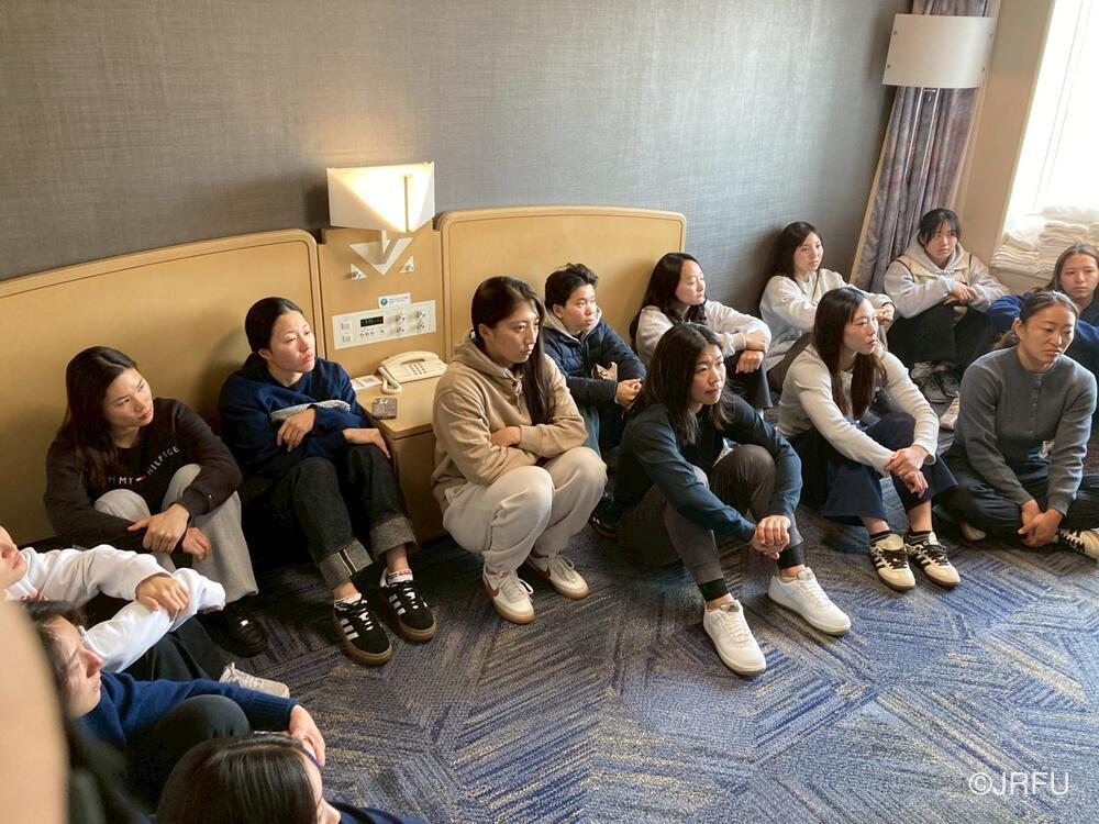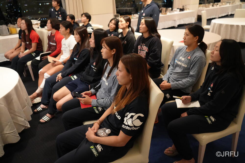 夜はチームミーティングを行い、どんな状況でもどんな相手にもサクラセブンズのラグビーをするために、練習の中で何を変える必要があるのかを全員で考えました。