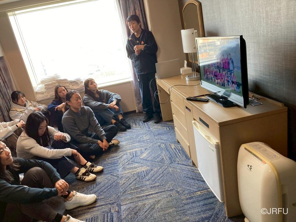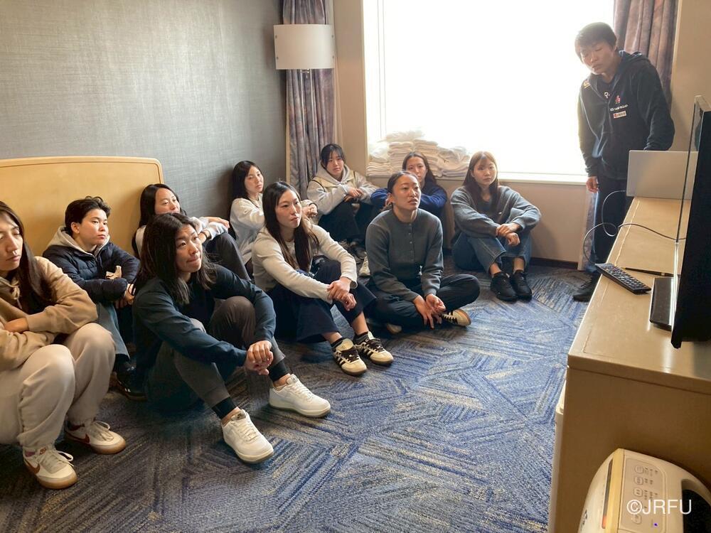 ホテルに戻り、昼食をとった後はチームミーティングを行いました。前半のトレーニングをふりかえり、明後日のゲームについて確認しました。
