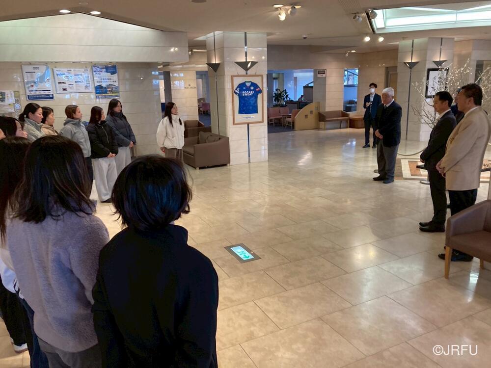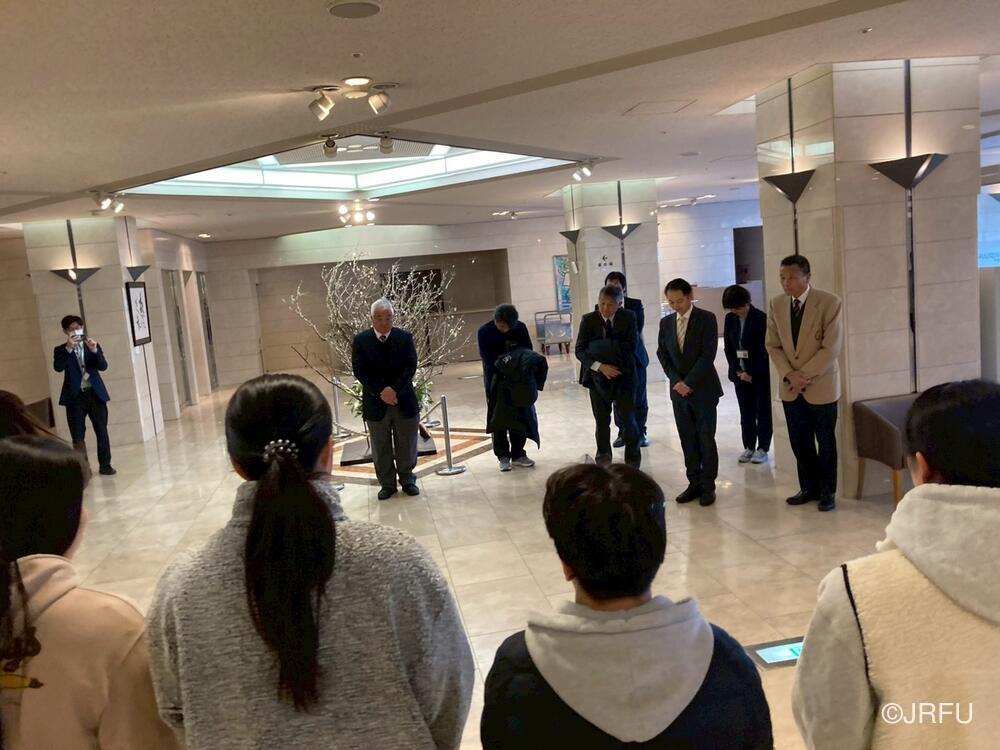 ホテル出発前に、お世話になった徳島県の関係者の方々にお礼のご挨拶をしました。2026年初の女子SDS合宿として、四国大学さんをはじめ徳島県徳島市にたくさんのご支援、ご協力をいただき、大変有意義な時間を過ごすことができました。本当にありがとうございました。今月行われるSVNSシンガポール大会に向けて、今合宿の学びを次の合宿に繋げます。
