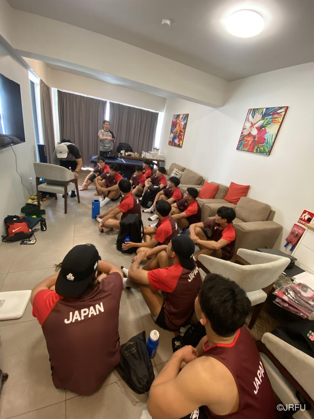 夕食後は、男子セブンズSDSの選手の方々から、ジャージプレゼンテーションがありました。明日から始まる大会に向けてチーム一丸となり最後まで諦めず頑張りたいと思います。