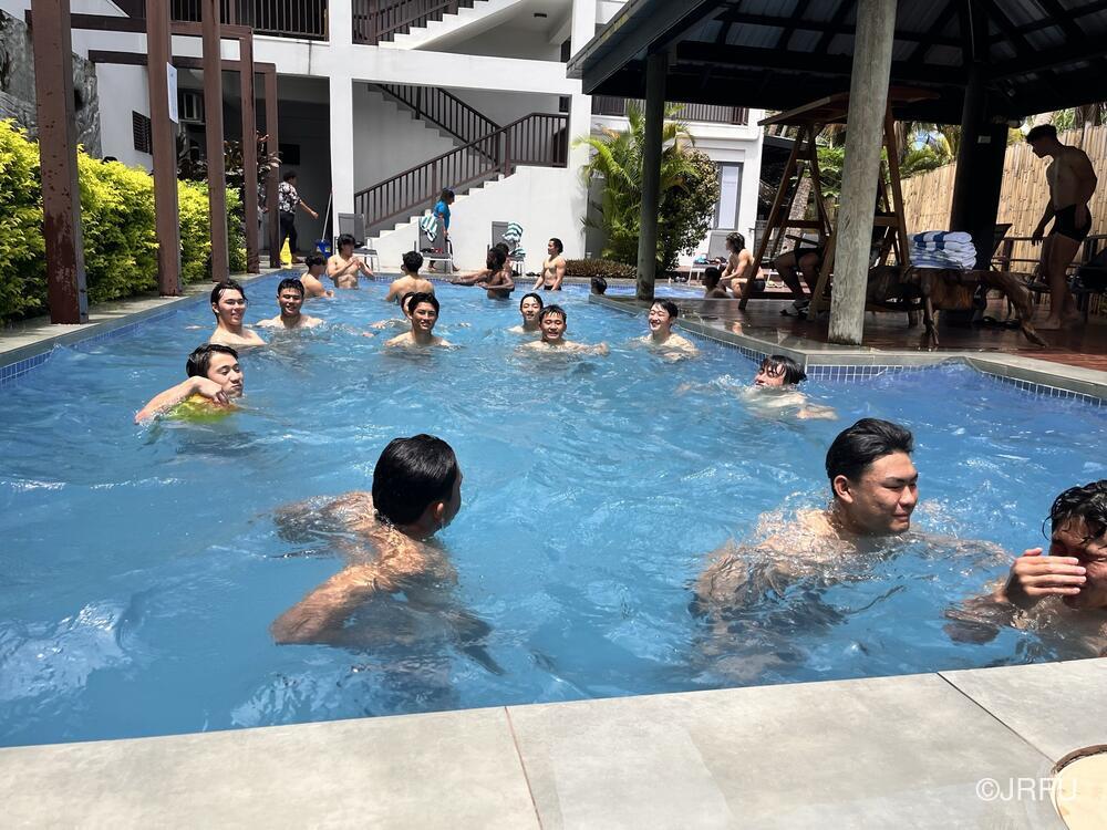 2試合目まで時間が空くので1回ホテルに戻ってみんなでプールに入り、リカバリーしました。