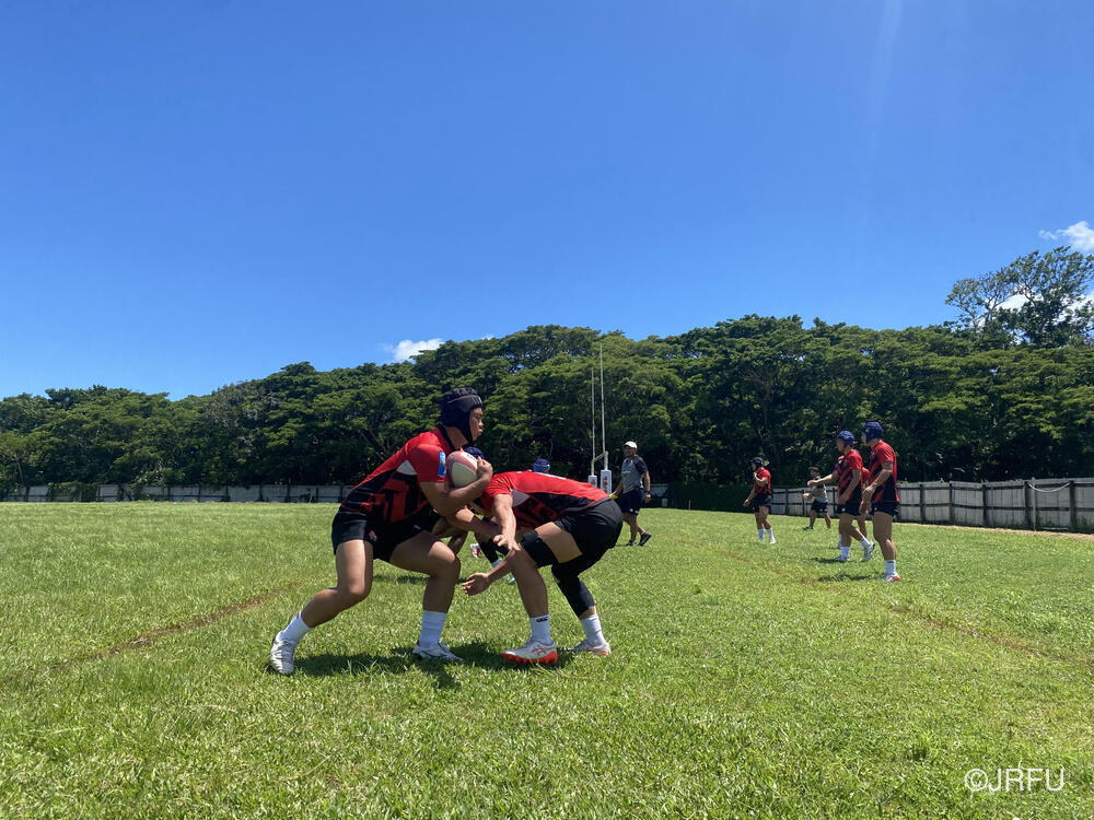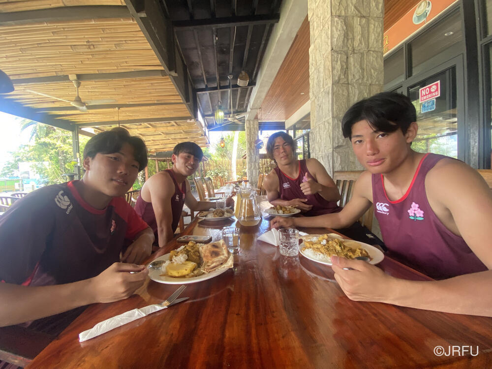 自分は初海外で結構緊張してる中、先輩方が優しくいろいろ教えてくれて、試合の中でもハドルの中でこうしたらいいよ、などいろんなこと教えてくれて、結構成長できた遠征になりました。でも試合内容は、そんなに良くない結果だったけど、成長していくために目標として掲げた「チャレンジ」という面では、結構いい内容ではあったんじゃないかと思ってます。このメンバーでフィジー遠征来れたこと、とても嬉しく思ってます。