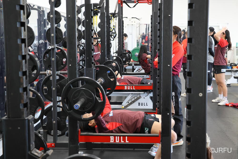 練習の最後に個人練習を行い、ジムへ移動して前半最後のジムセッションです。疲れが溜まっている中でも、それぞれがより強い身体、怪我をしない身体を目指して、集中して取り組みました。