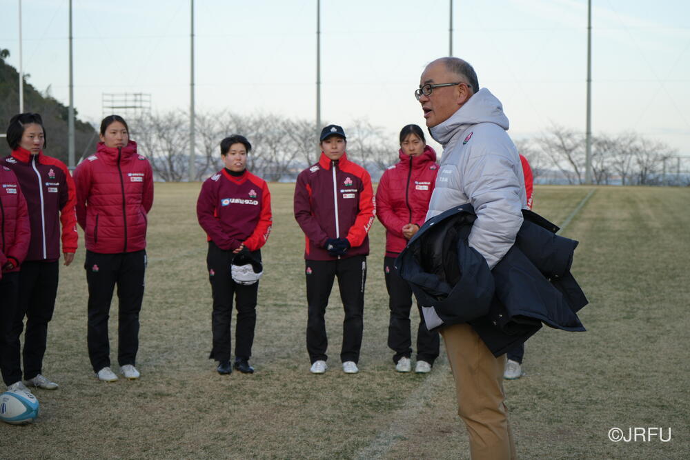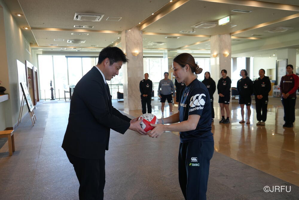 また、今日は遥々、日本ラグビーフットボール協会から山神CEOが練習見学にいらっしゃいました。午後の練習後は山神CEOから激励のお言葉と選手たちが大喜びの甘い差し入れをいただきました。いつも活動をサポートしていただき、ありがとうございます。