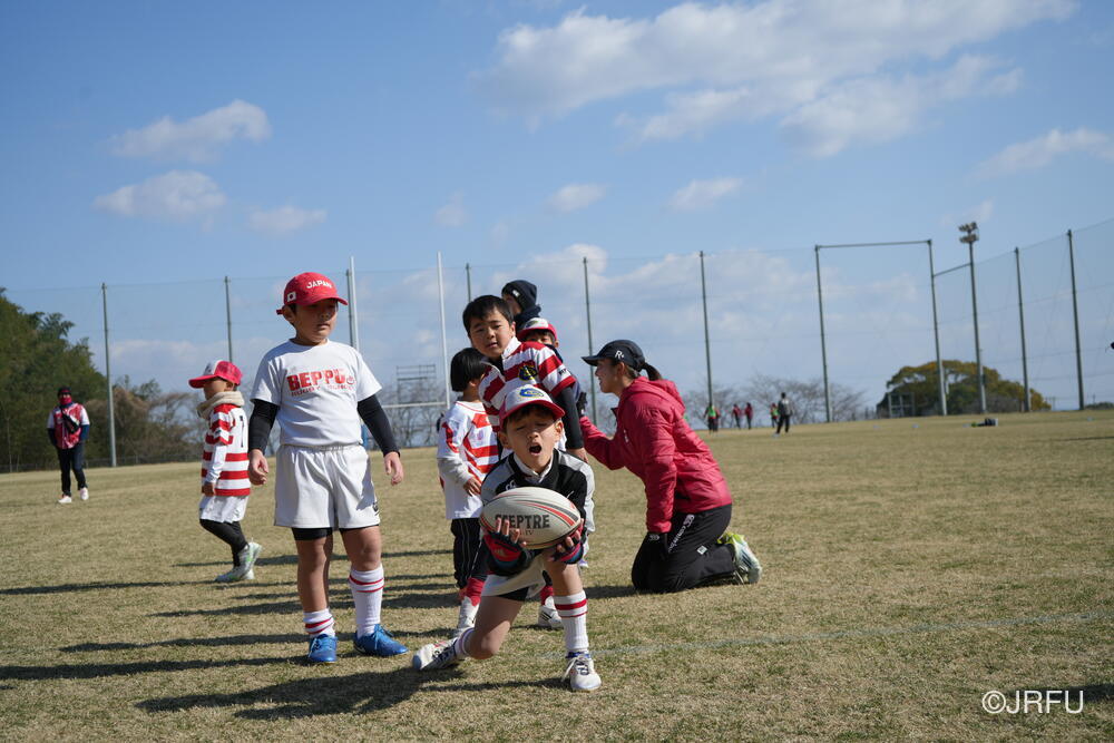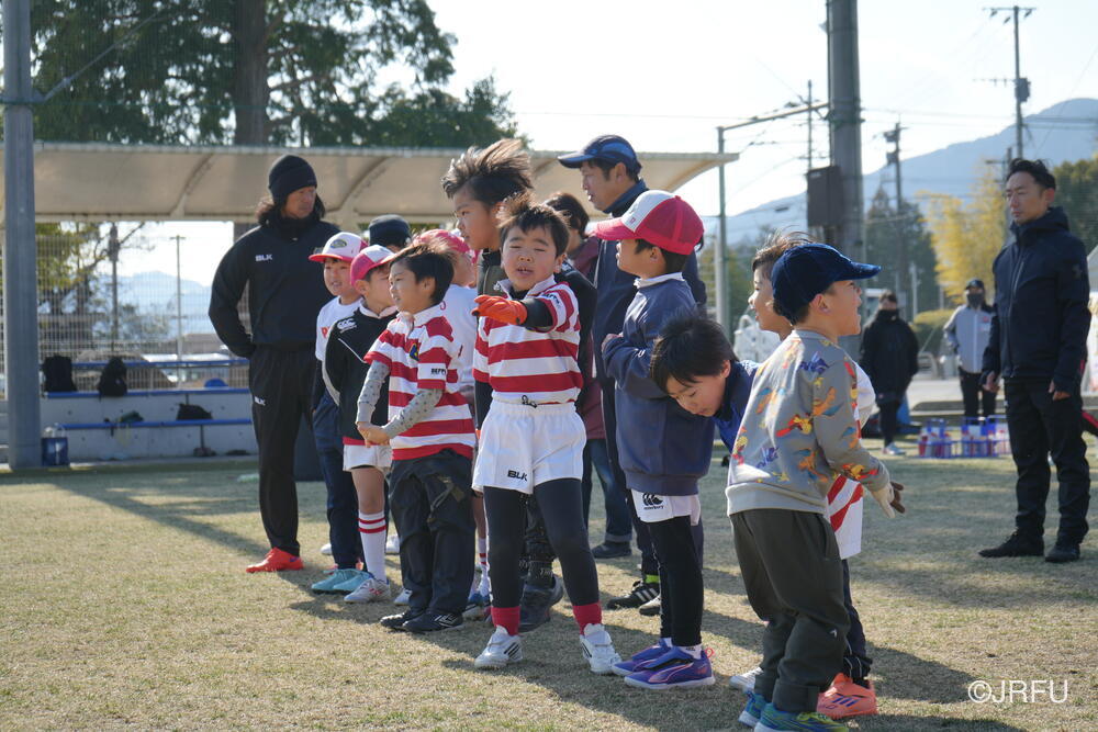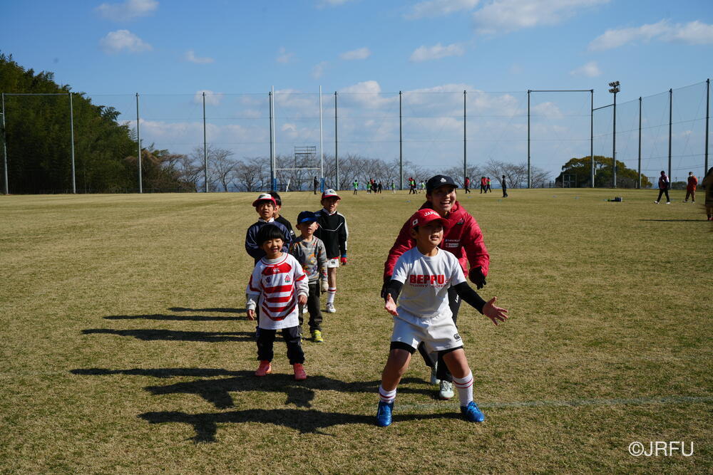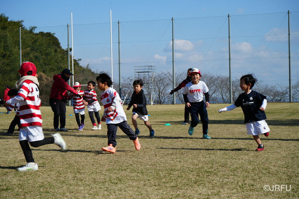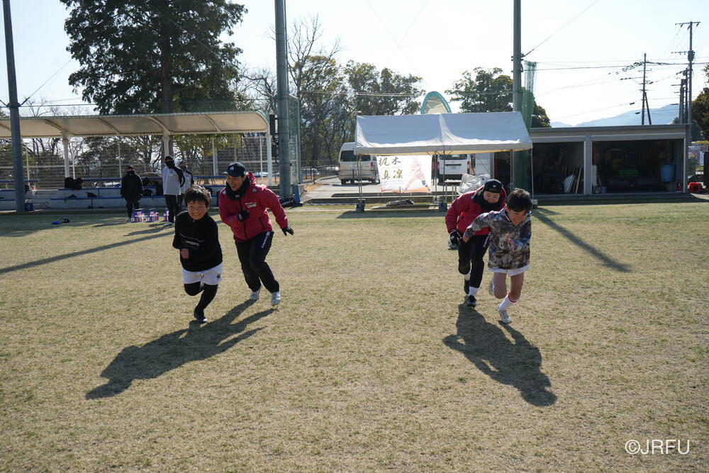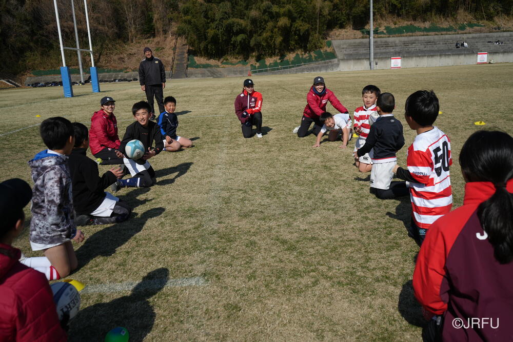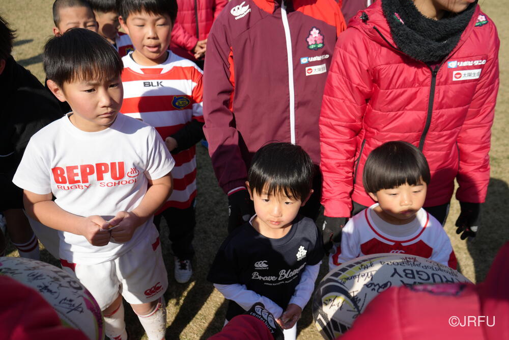 元気いっぱいに走り回る子どもたち、熱心にSDSの選手たちの説明を聴く子どもたちから、選手・スタッフともに元気と笑顔をもらいました。寒い中、集まってくださった別府ラグビースクールの皆さん、ありがとうございました!