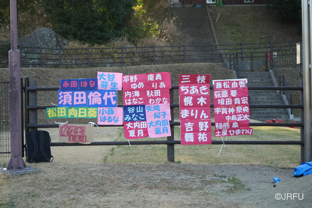 女子SDSの合宿は基本的に一般公開のため、今回もサクラセブンズのファンの方や地元の女子選手が練習見学にいらっしゃいました。中には、サクラセブンズのレプリカジャージを着て、選手・スタッフの名前入りプラカードを作って来てくださる方もいました。いつも応援していただきありがとうございます!