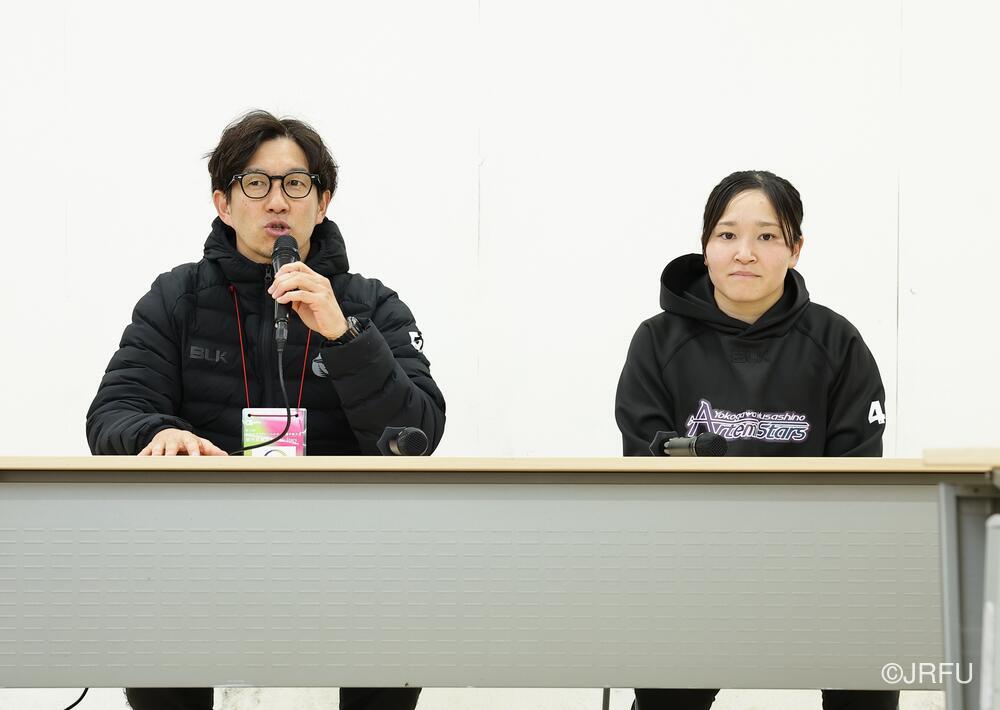 横河武蔵野Artemi-Starsの藤戸恭平ヘッドコーチ(左)と山本和花キャプテン(右)