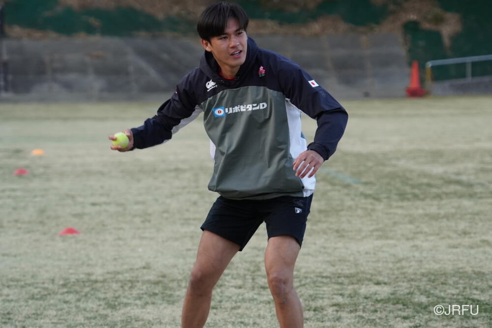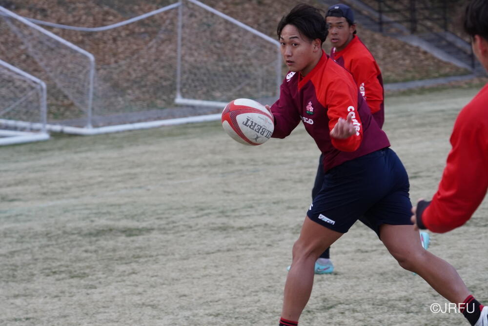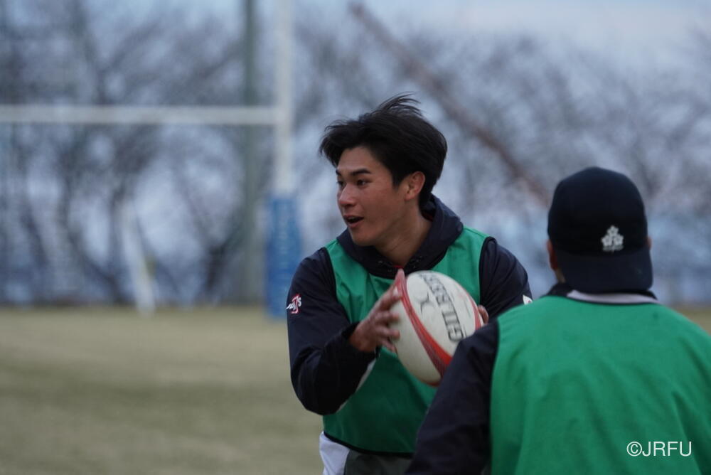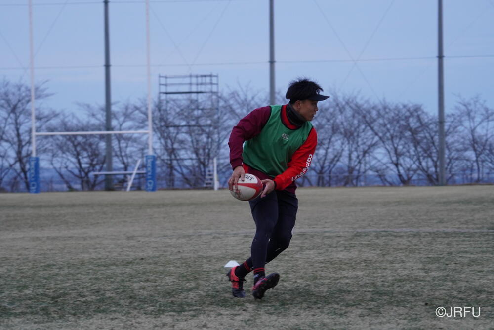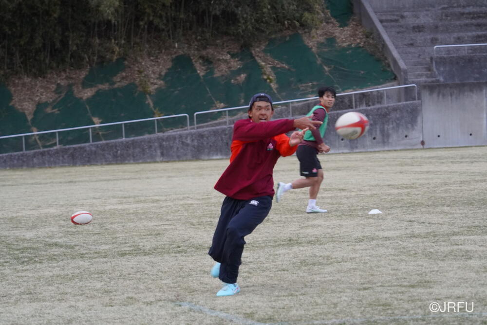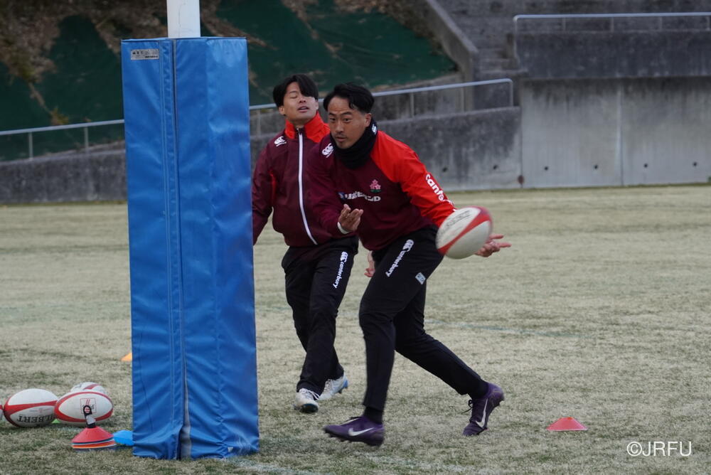 その後はグラウンドへ移動し、スキル練習を実施しました。寒空の下での練習となりましたが、ゲーム形式のメニューでボールを動かしつつ、ハンドリングなどの基礎スキルにも重点を置き、一つひとつのプレーを確認しました。