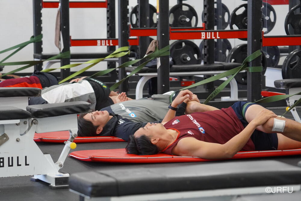 その後は、各自の身体の状態や課題に合わせたリカバリーを行いました。柔軟性の確認や筋力の左右差の計測などを通じて、怪我予防や身体強化に努めています。