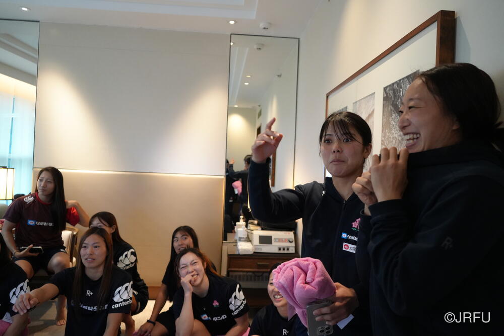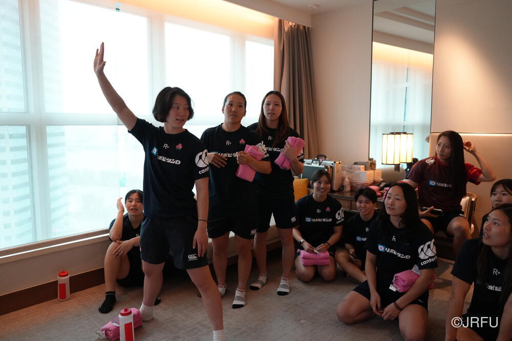荷物を各自の部屋に入れ、落ち着いたところでチームミーティング。アイスブレイクを入れた後、明日からのスケジュールや今大会の目標を改めて確認しました。そして、明日のトレーニングのポイントを心技体の穴埋め早押しクイズで当てていきました。