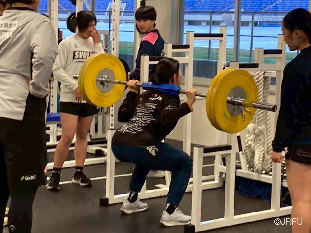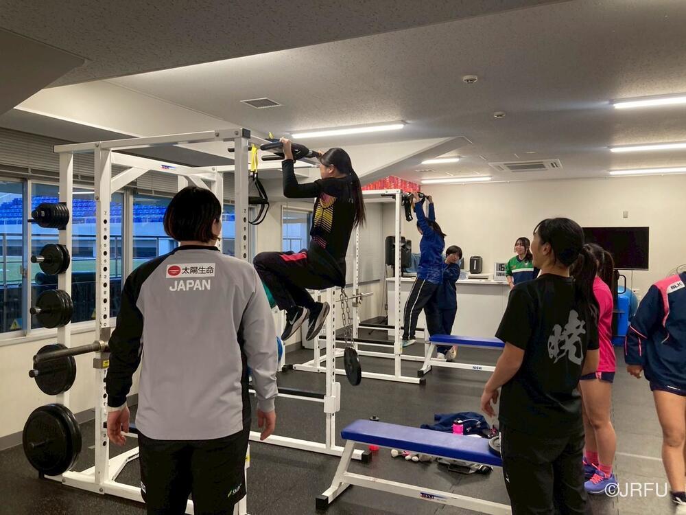 続いてジムに移動して行ったウェイト測定でも、室内には活気あふれる声掛けが響き、各自がベストパフォーマンスを引き出すために全力を尽くしました。