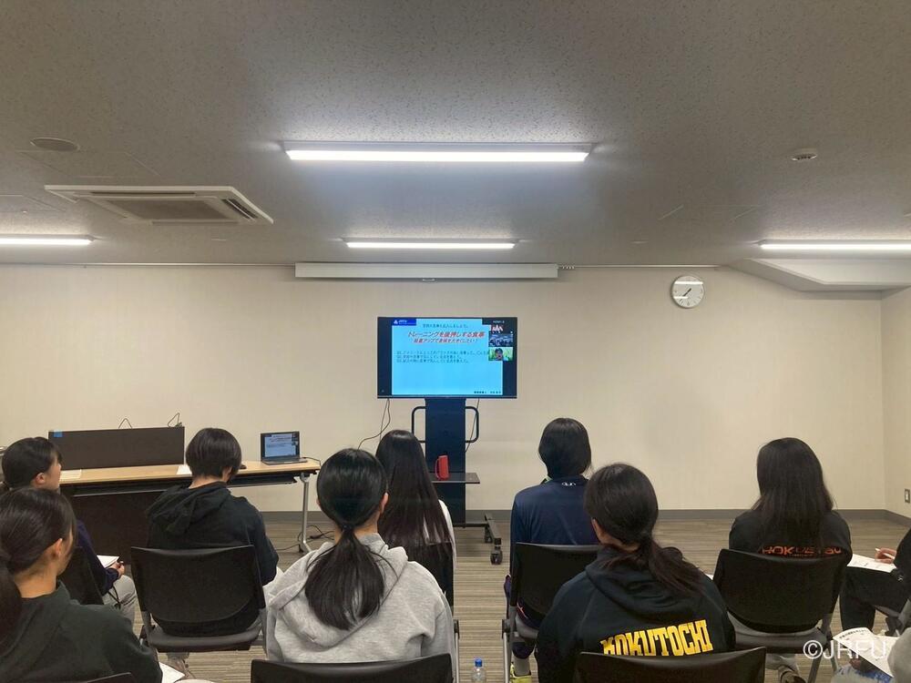 「トレーニングを後押しする食事」のテーマのもと、理想的な食事メニューの構成について紹介頂き、日頃の食生活を振り返り、理想の体を作るためにどのような工夫ができるか、自分自身の食生活と真剣に向き合う時間となりました。