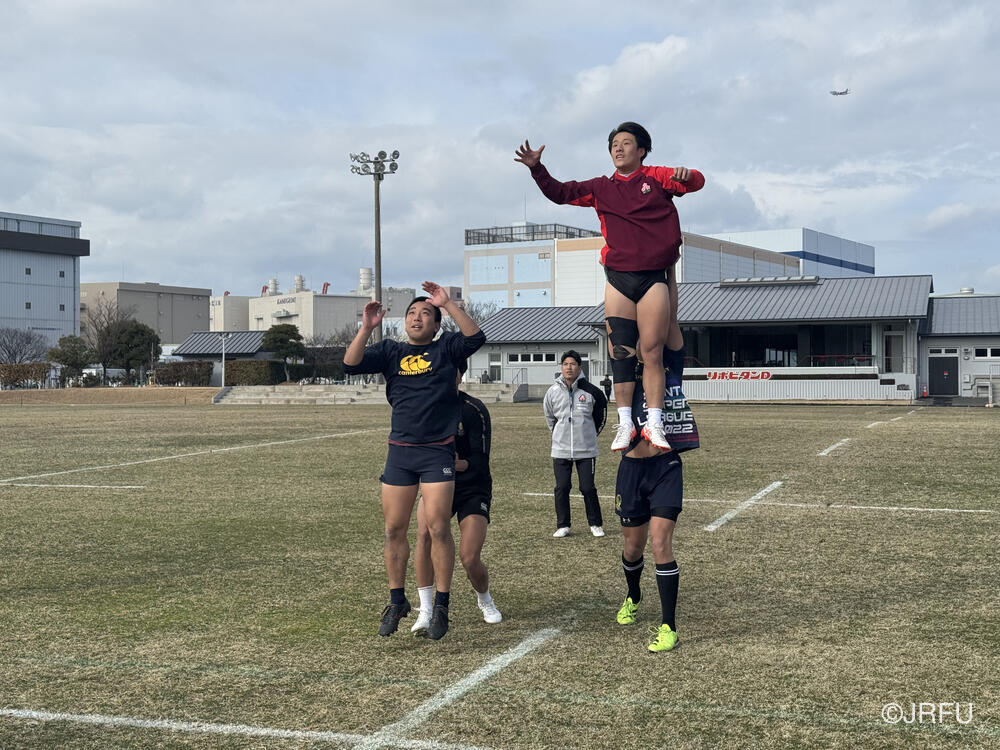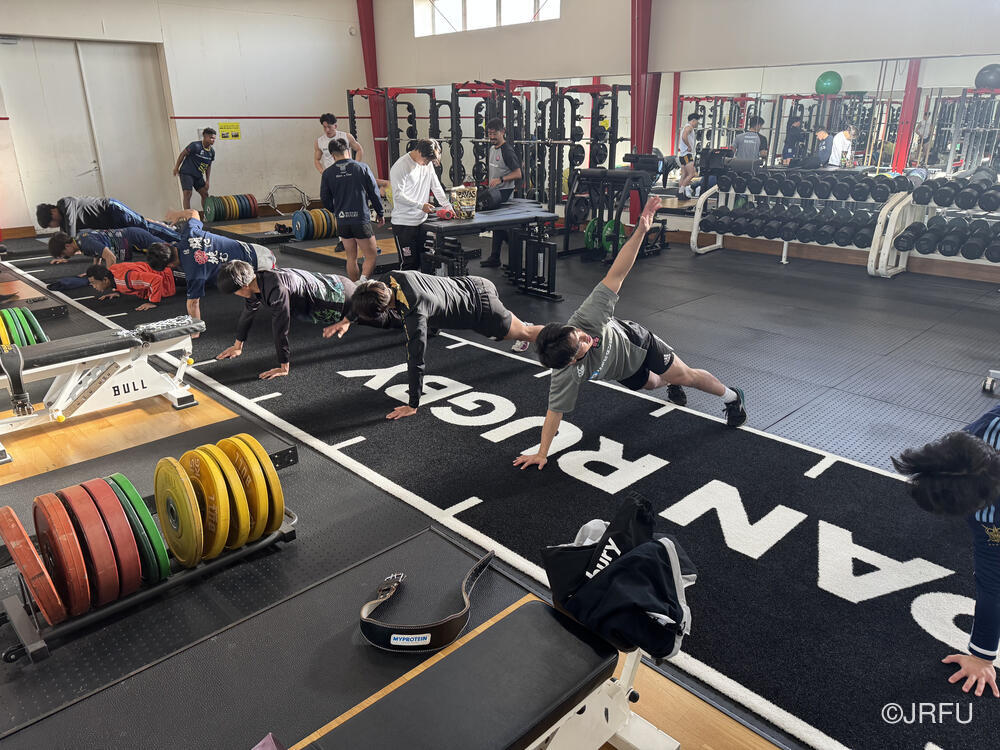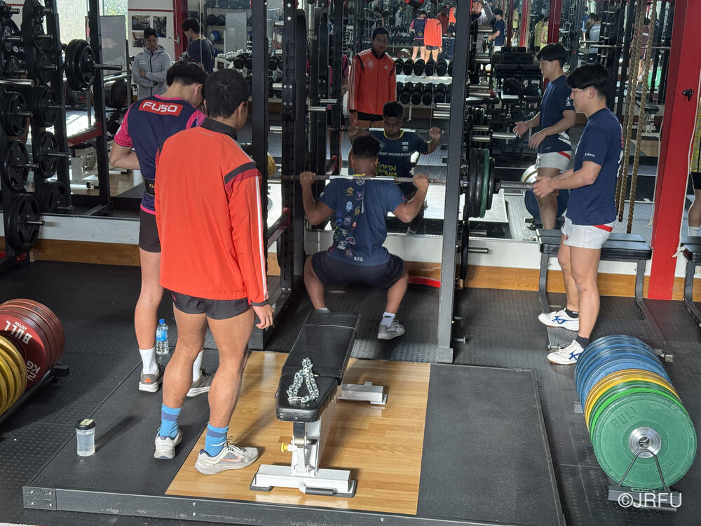 午前中ジムでの測定から始まり、フィールドではFW、BKに分かれてセットプレーについて確認を行いました。