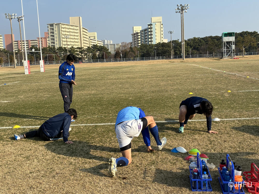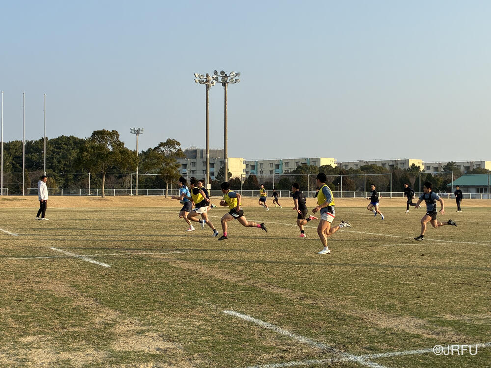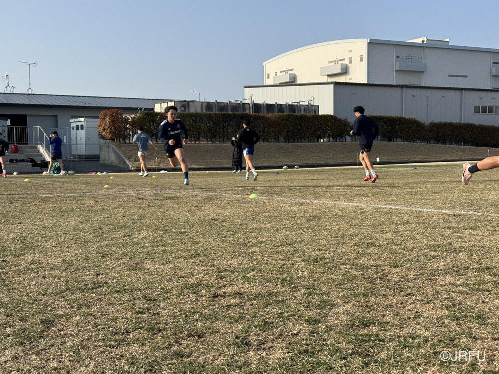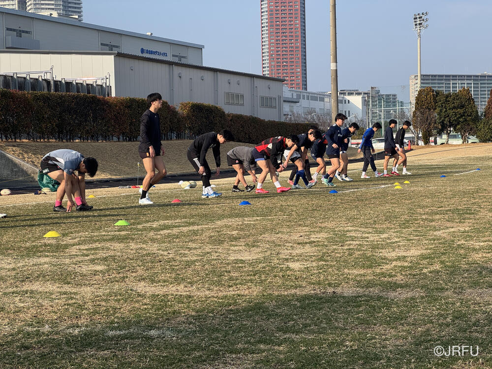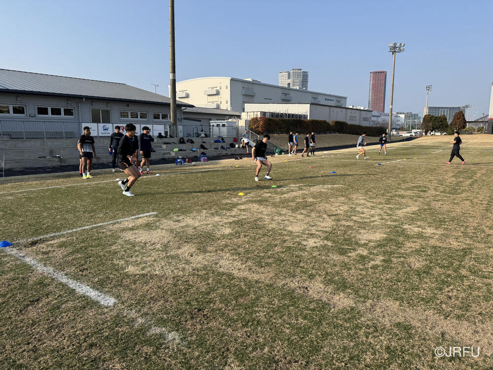 2月3日に行った合宿メンバーを中心に今回もスタートをし、まずはチームミーティングで前回行った内容の復習の時間をもちました。自分のフィジカルの状況を知ること、また、自分がパフォーマンスを出すためにどうすべきか考えアクションをしてみることが大切といったお話がありました。アクション=挨拶、コーチ陣への質問などささいなことからでもOKであり、その積み重ねが今後に繋がるということを頭に入れ、グラウンド練習へ。