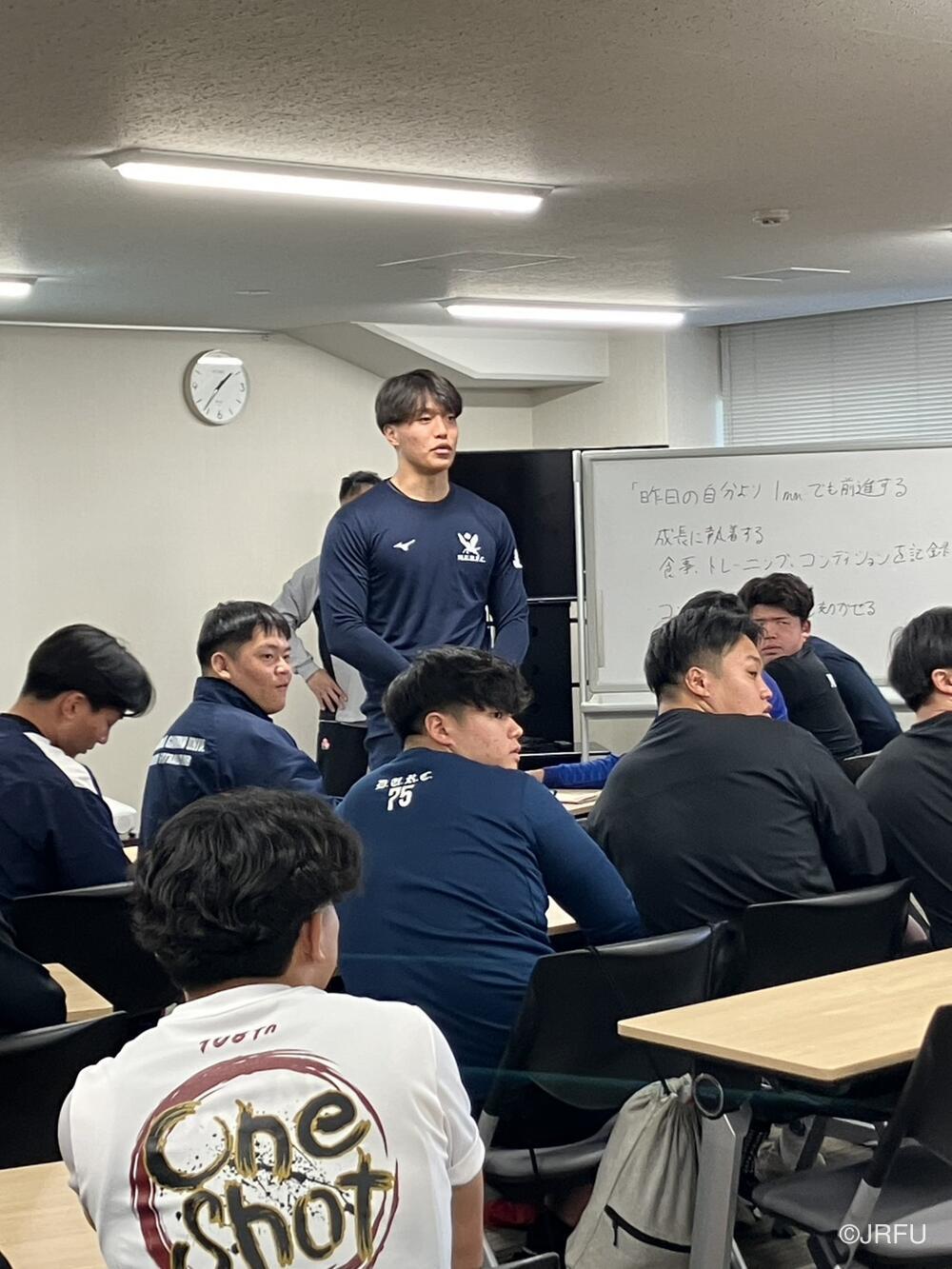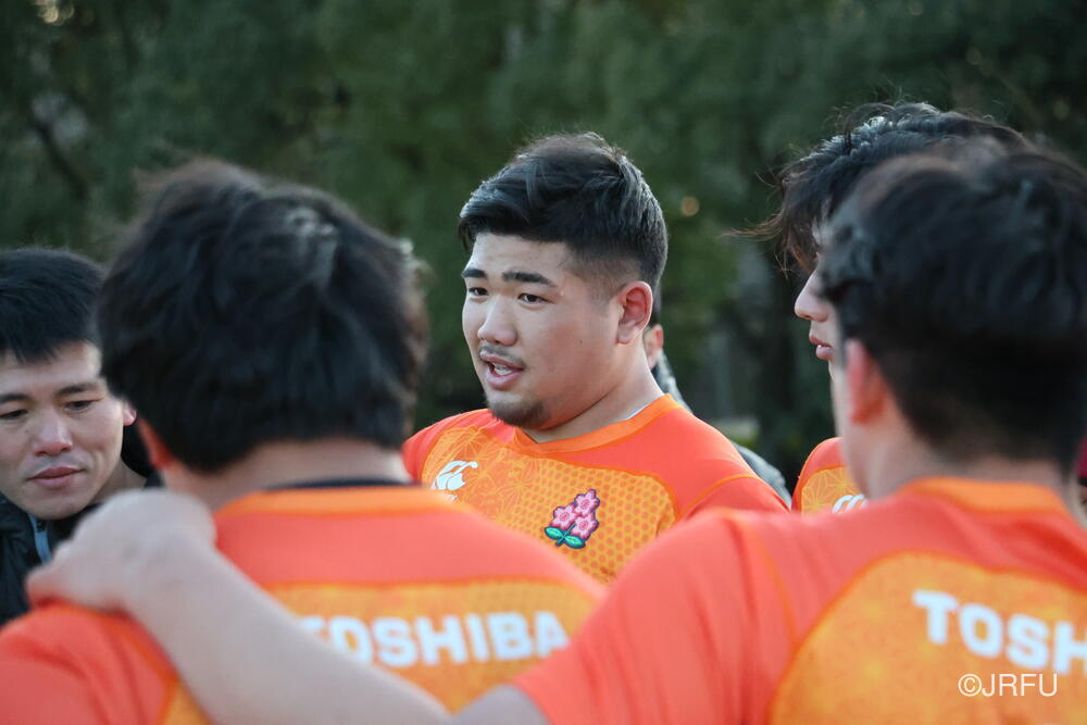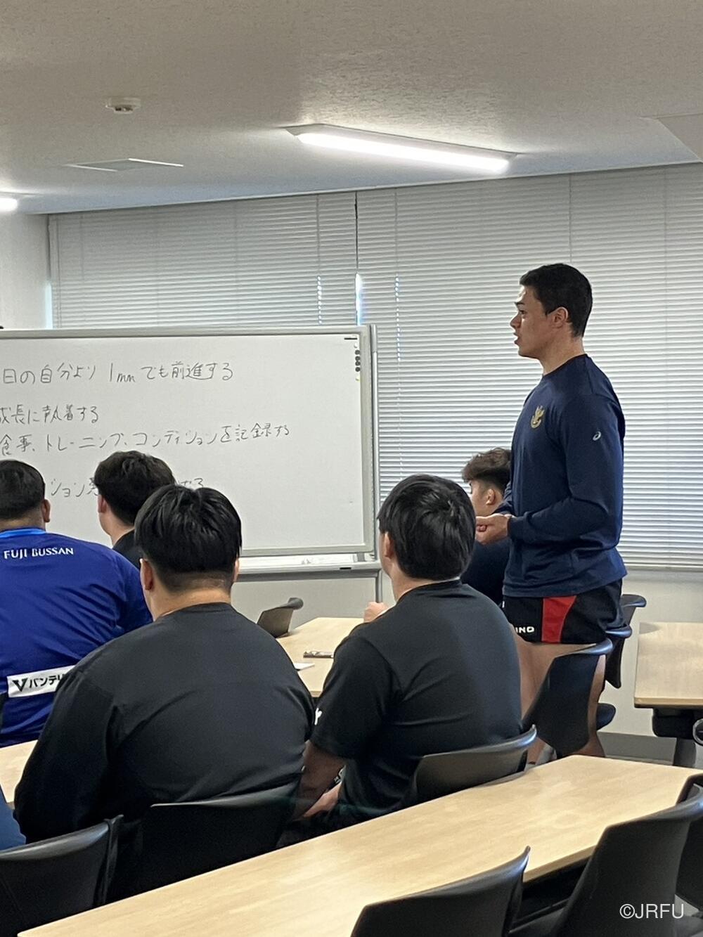 またエディ・ジョーンズHCから、「Junior World Championships初戦のNZ戦がその試合になるように、今日からNZと試合するまで、どうやって自分の強みを出していけるか、NZとの試合が自分にとって最高の試合になるようにしっかりとした準備をすること。NZは最高のターゲット。1日も無駄にしないこと。毎日、勝っていくことが、NZを倒すことへの道である」と話があり、みんな真剣な眼差しで話を聞いていました。