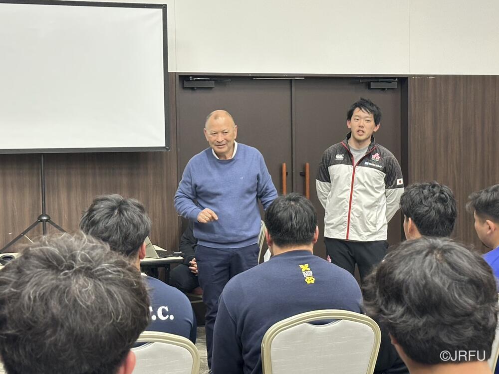今日は日本代表のエディ・ジョーンズHCが視察に訪れ、夕食後のミーティング時に激励の言葉をいただきました。