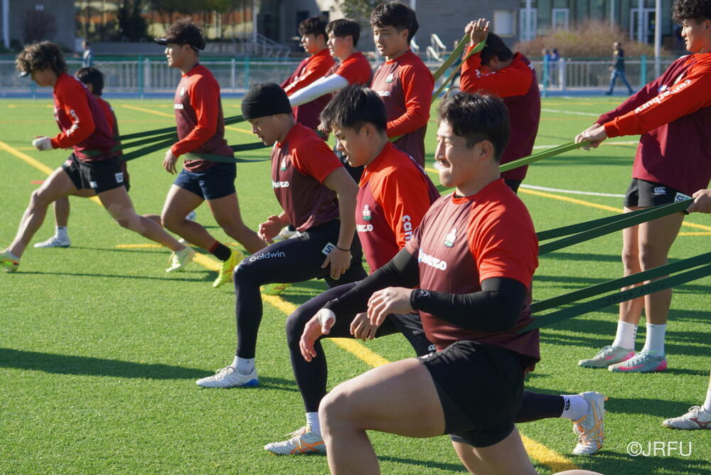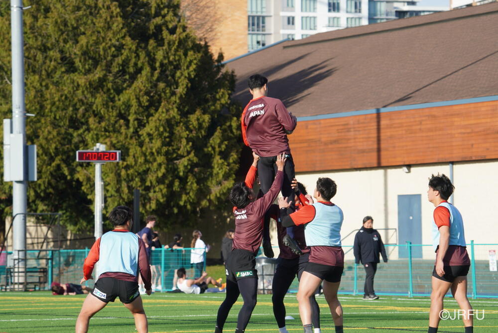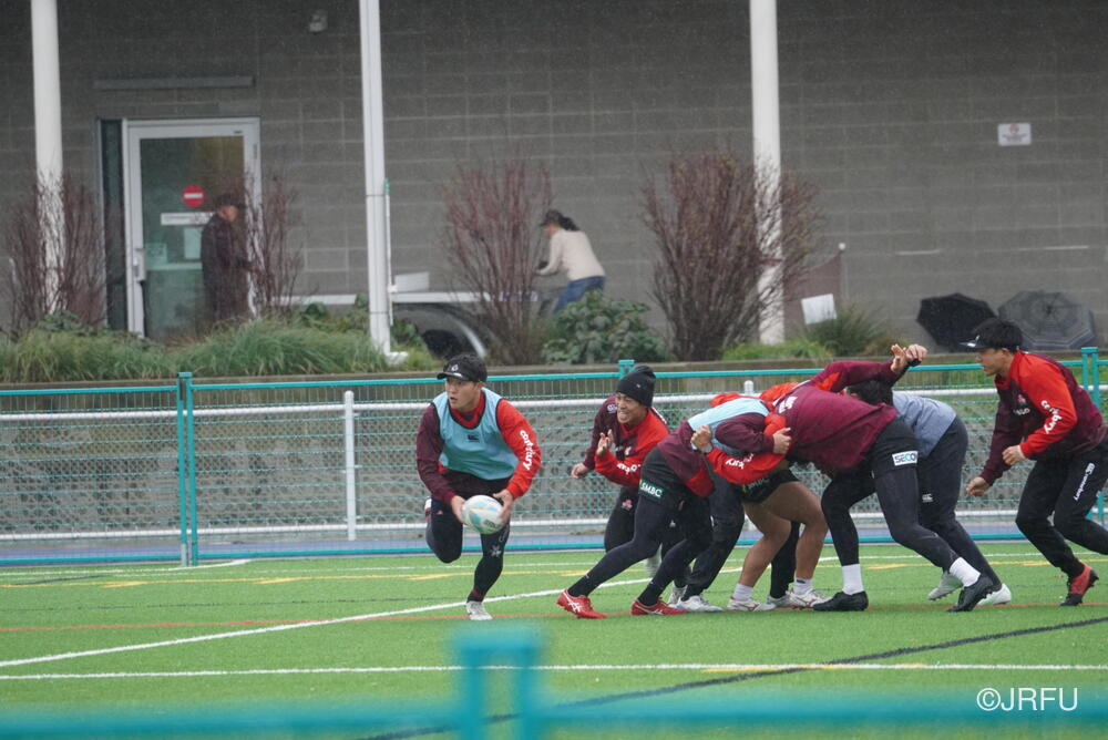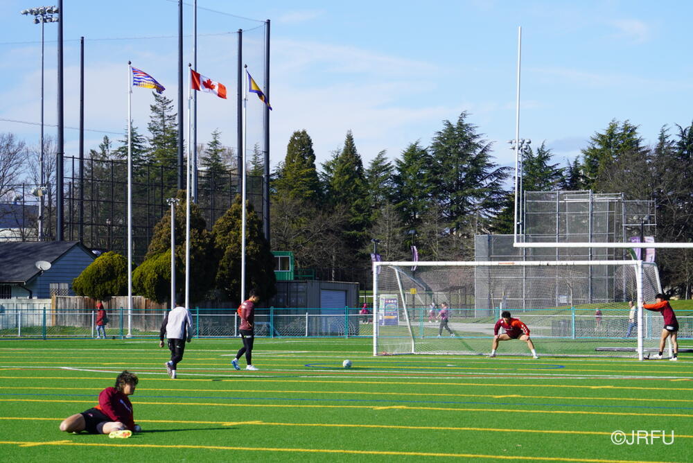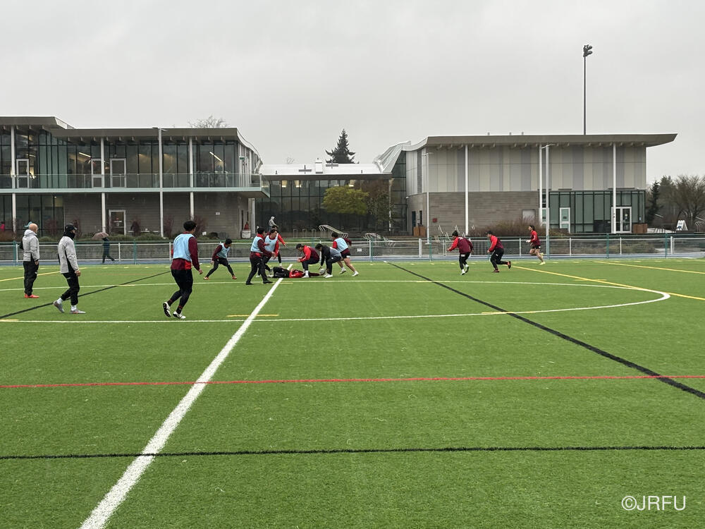 基本のアタックの動きやサインプレーなどを確認しましたが、時差ボケのある中での移動後初のグラウンド練習ということもあり、ハンドリングエラーなどのミスが目立つ場面もありました。遠征直後の調整の難しさを改めて実感する時間となりましたが、選手たちは一つひとつのプレーに対して真剣に向き合っています。