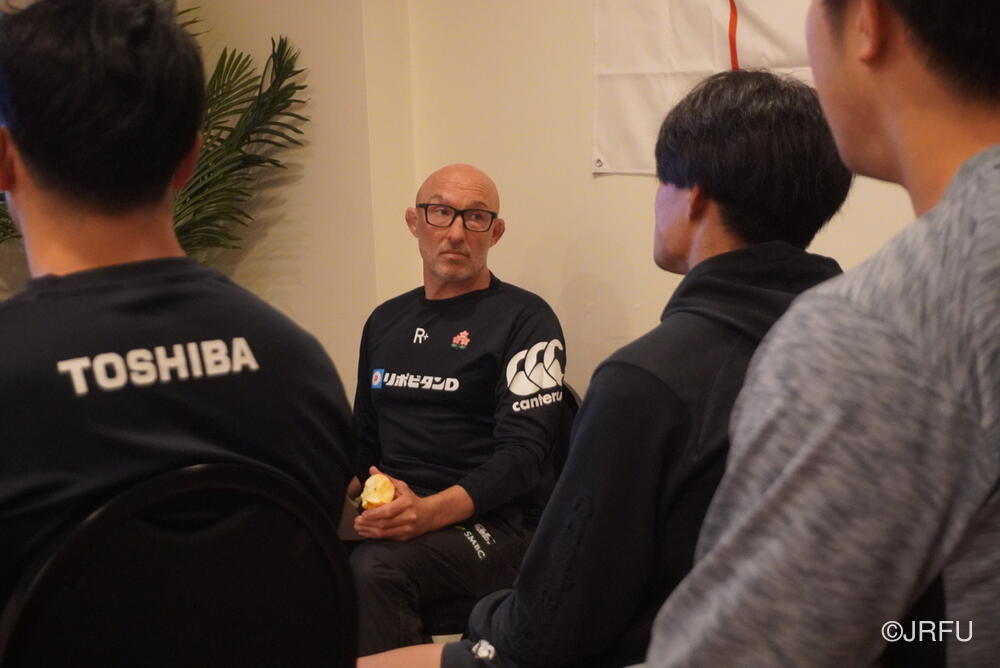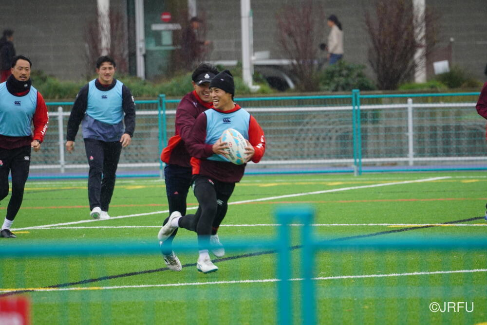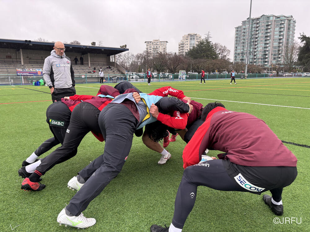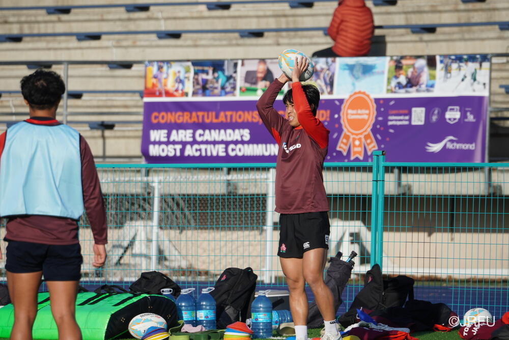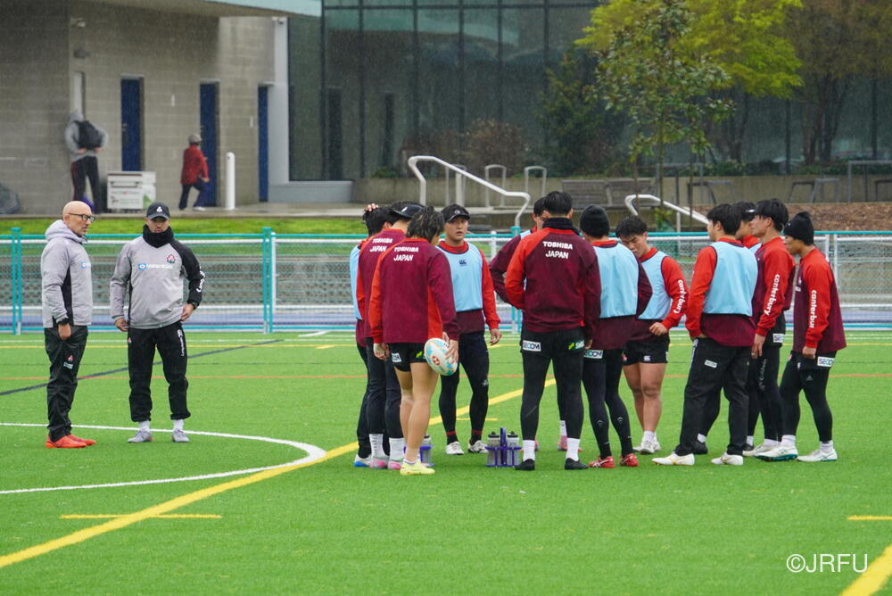 基本のアタックの動きやサインプレーなどを確認しましたが、時差ボケのある中での移動後初のグラウンド練習ということもあり、ハンドリングエラーなどのミスが目立つ場面もありました。遠征直後の調整の難しさを改めて実感する時間となりましたが、選手たちは一つひとつのプレーに対して真剣に向き合っています。