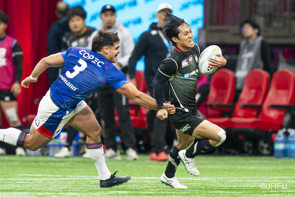 初戦のチリ代表戦は、序盤にトライを許すも連続トライで逆転。その後、追いつかれるもトライを取り返しリードを保っていましたが、後半早々にレッドカードで1人を欠くという厳しい状況に陥ります。