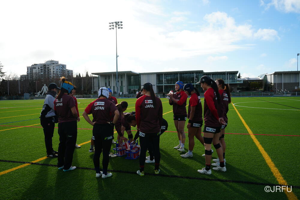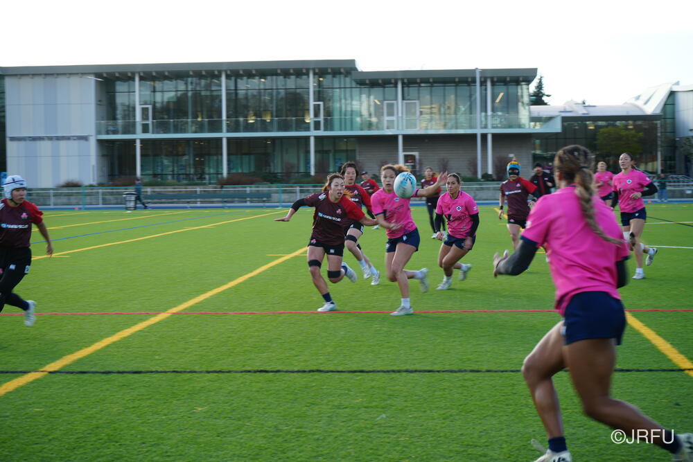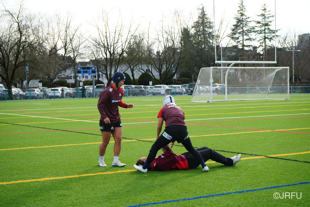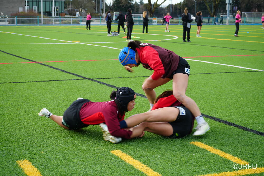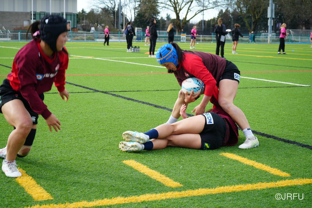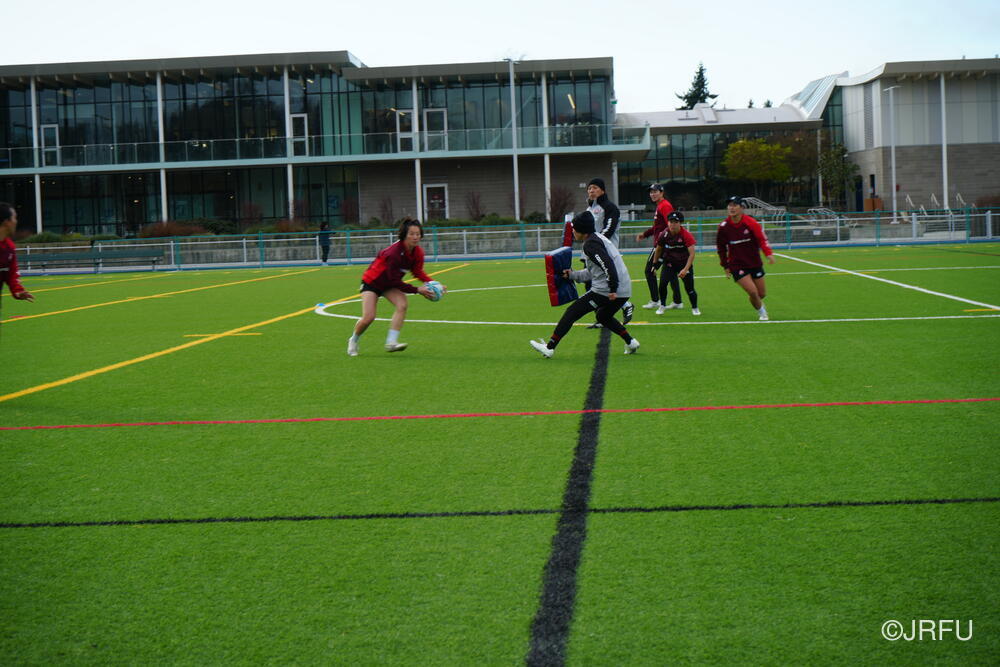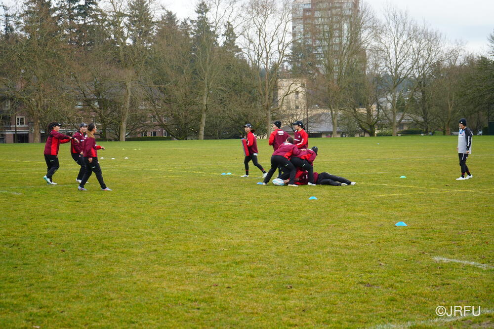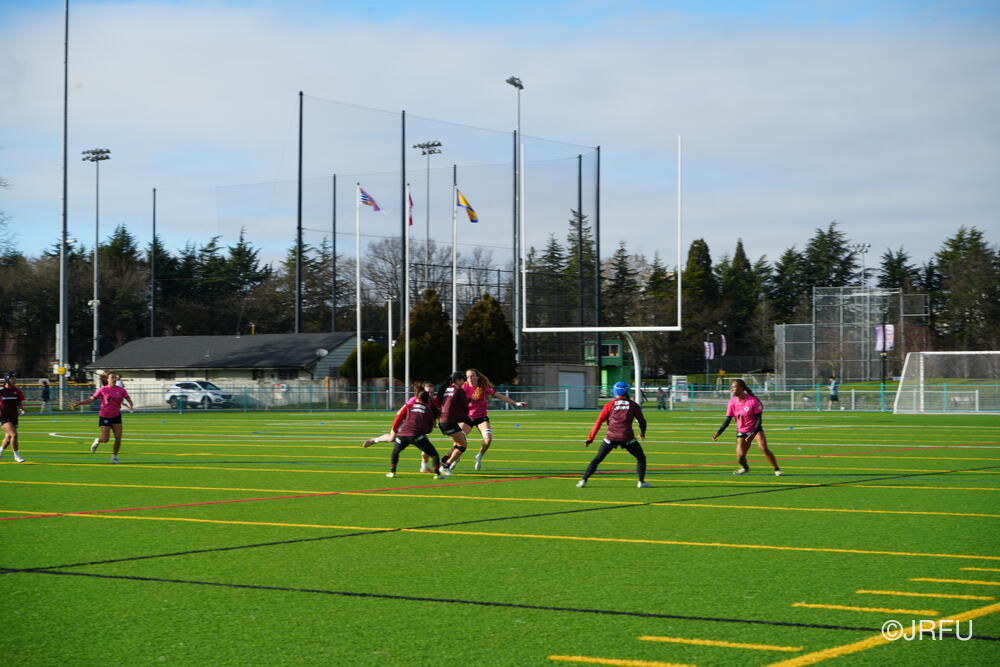 午後は車で45分ほど移動し、カナダ代表チームとの合同セッションを実施。カナダ代表が普段採用しているルールに基づいた7対7を繰り返し行い、これまで積み上げてきたものがフィジカルの強い相手にどこまで通用するかを試す機会となりました。手応えを得られた部分と課題が明確になった部分があり、大会前に有意義な自信と修正点を得ることができました。カナダ代表チームの皆様、貴重な機会をいただき本当にありがとうございました!