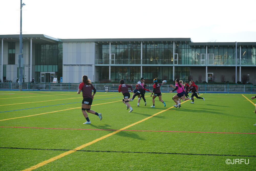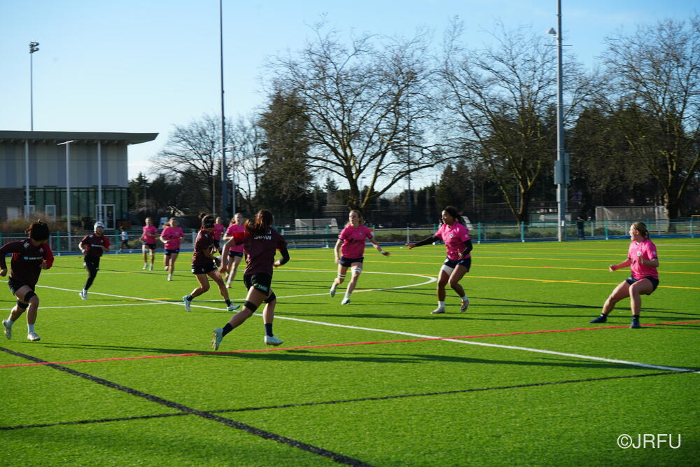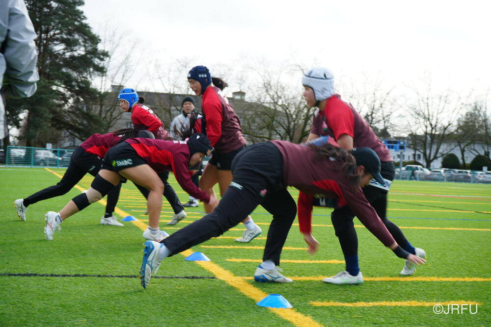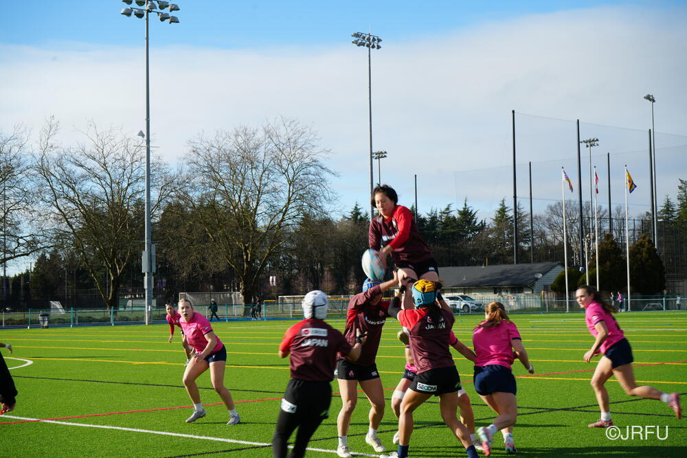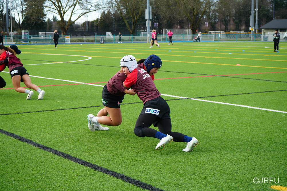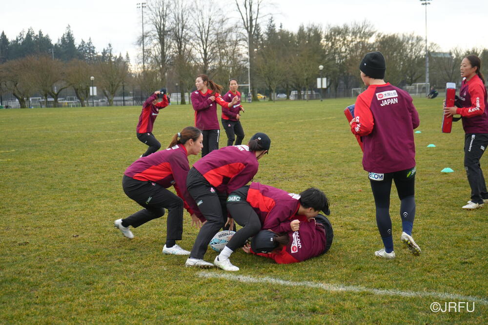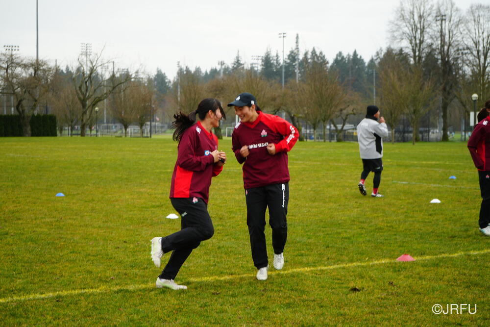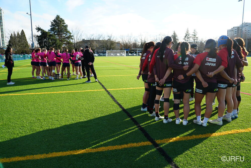 午後は車で45分ほど移動し、カナダ代表チームとの合同セッションを実施。カナダ代表が普段採用しているルールに基づいた7対7を繰り返し行い、これまで積み上げてきたものがフィジカルの強い相手にどこまで通用するかを試す機会となりました。手応えを得られた部分と課題が明確になった部分があり、大会前に有意義な自信と修正点を得ることができました。カナダ代表チームの皆様、貴重な機会をいただき本当にありがとうございました!