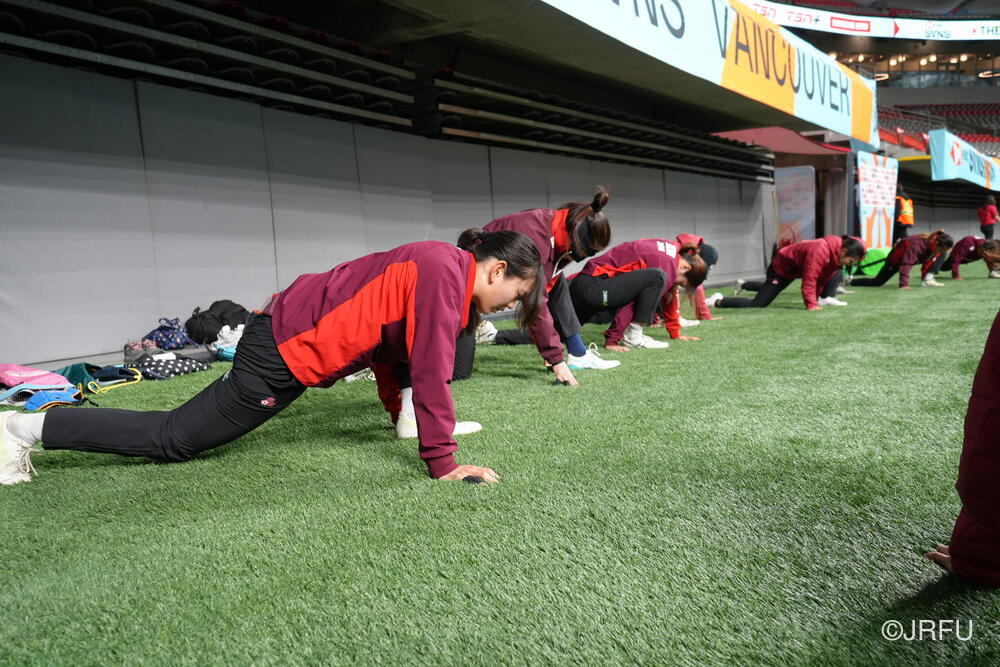 夕方のミーティングでは、フィールドでの動きを国内合宿の映像でフィードバック。明日はカナダ代表との合同セッションです。これまでの積み上げてきたことを試す、絶好の機会にしたいと思います。