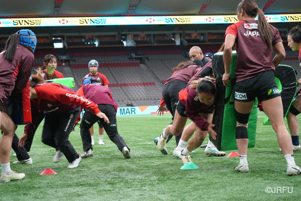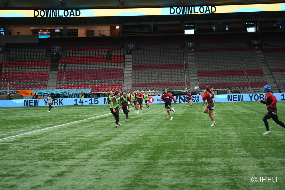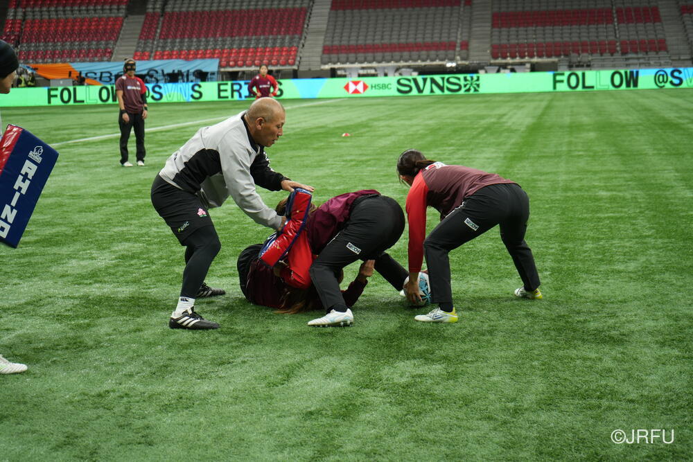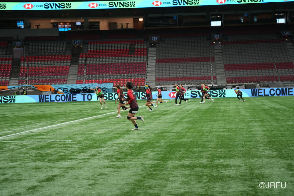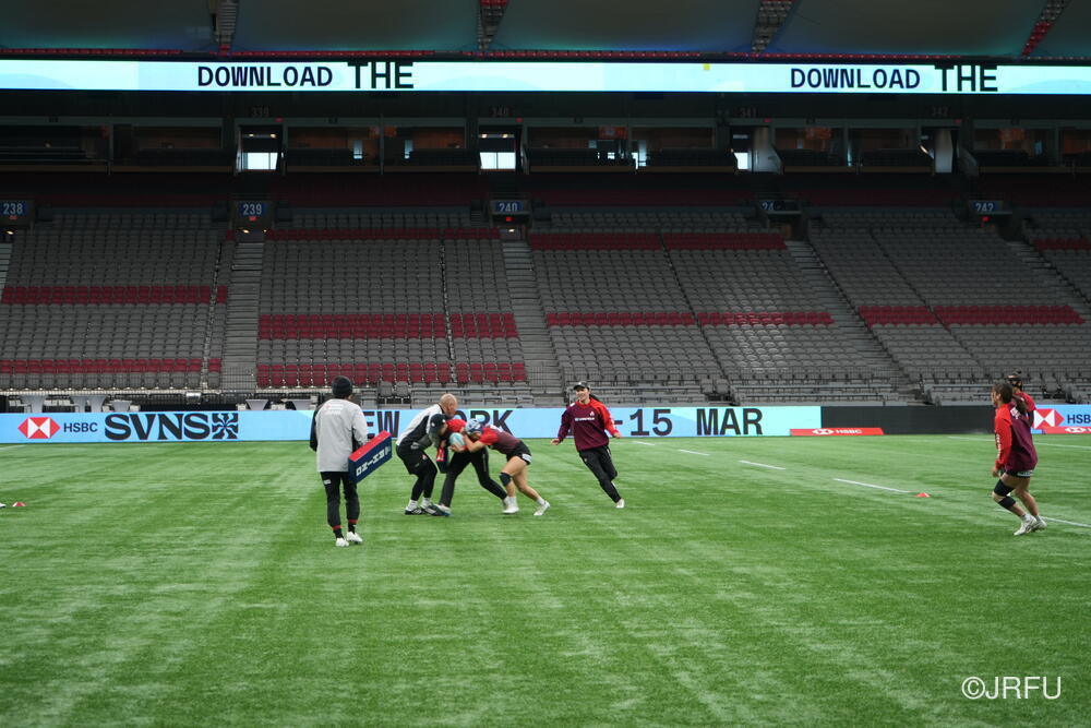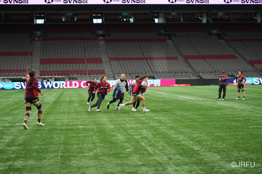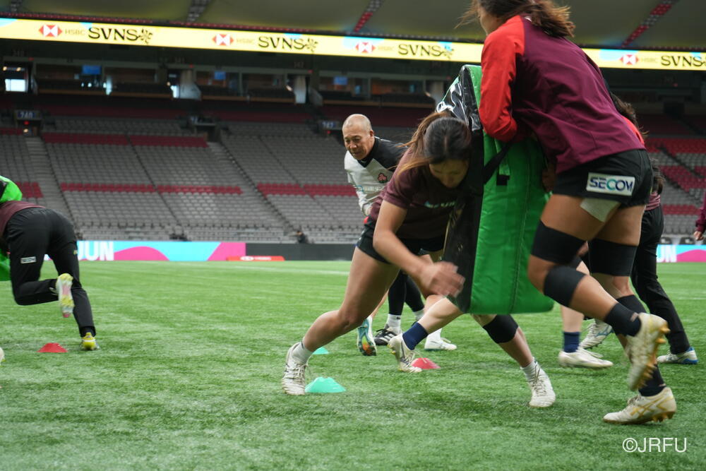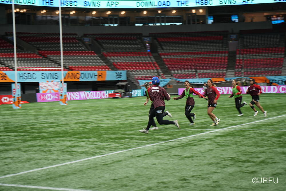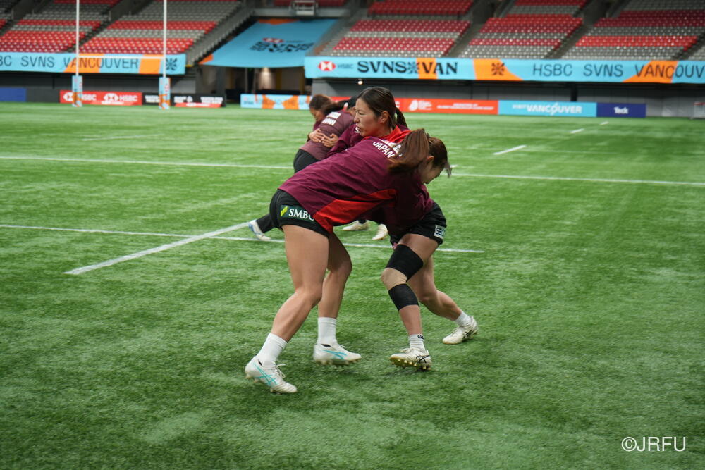 前大会から国内合宿、そして今遠征を通して、選手・スタッフそれぞれがチームを変えるために日々新しい自分への挑戦を続けています。一人ひとりがチームのためにアクションを起こし、その勇気ある一歩を全員で支え合いながら、2日間を戦い抜きます。明日から始まるSVNSバンクーバー大会に挑むサクラセブンズへの応援を、よろしくお願いいたします!