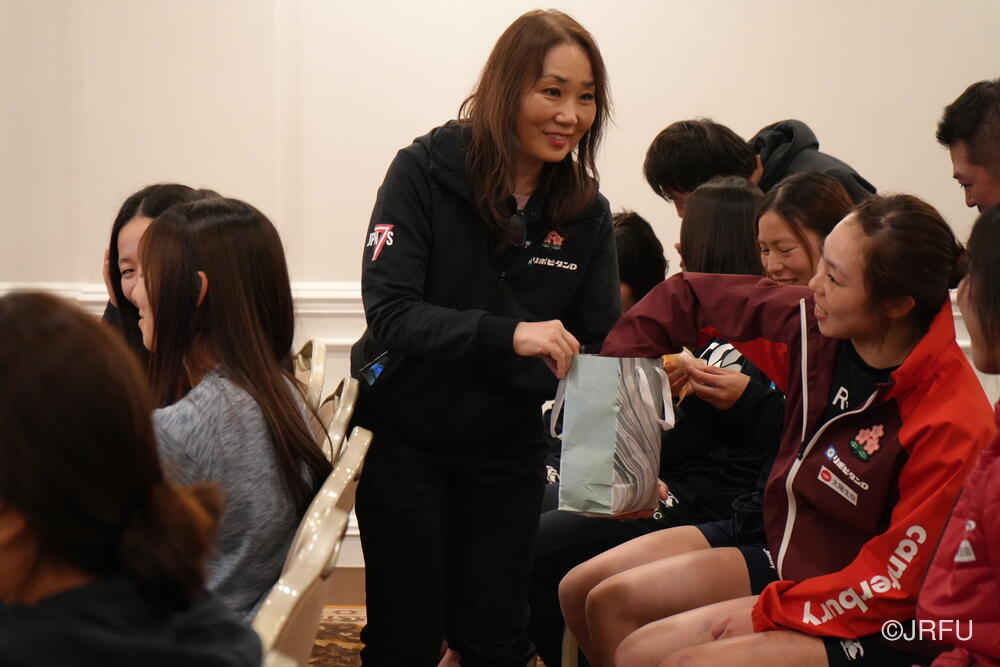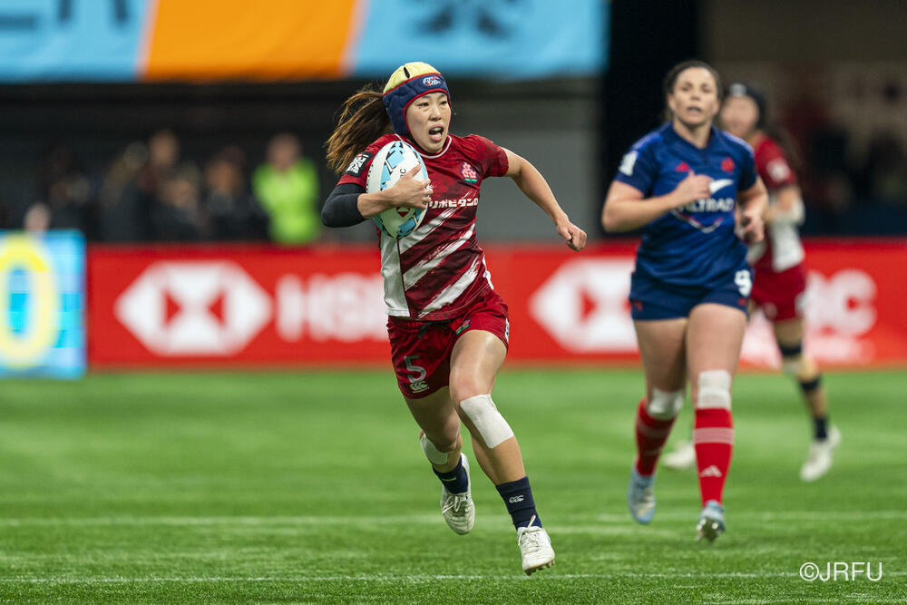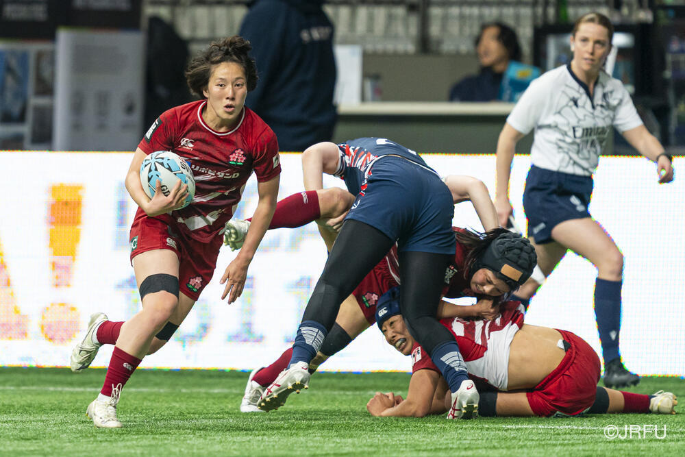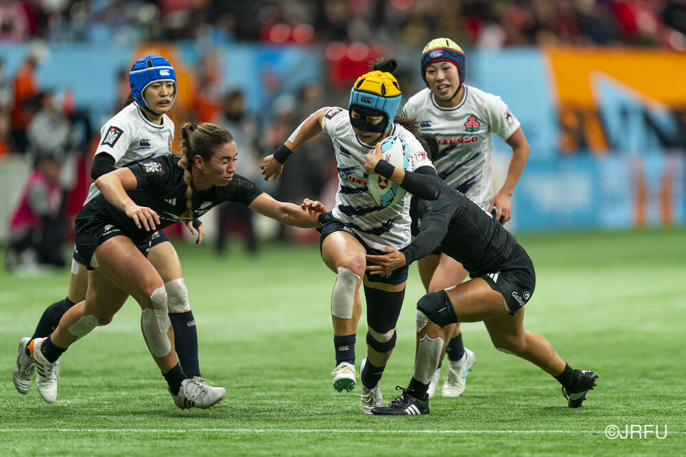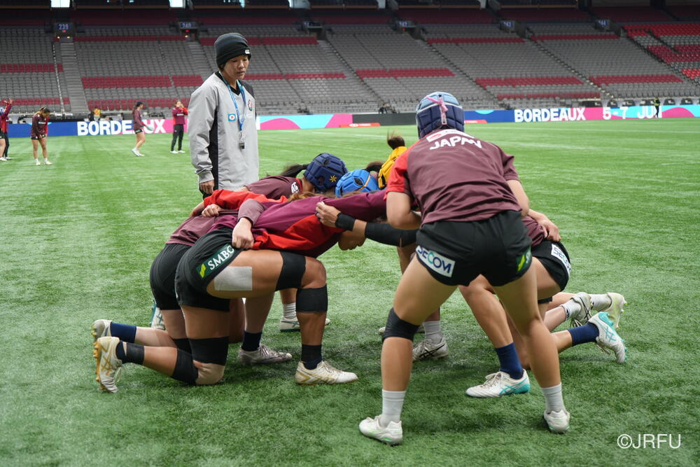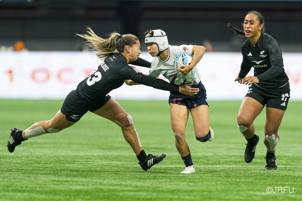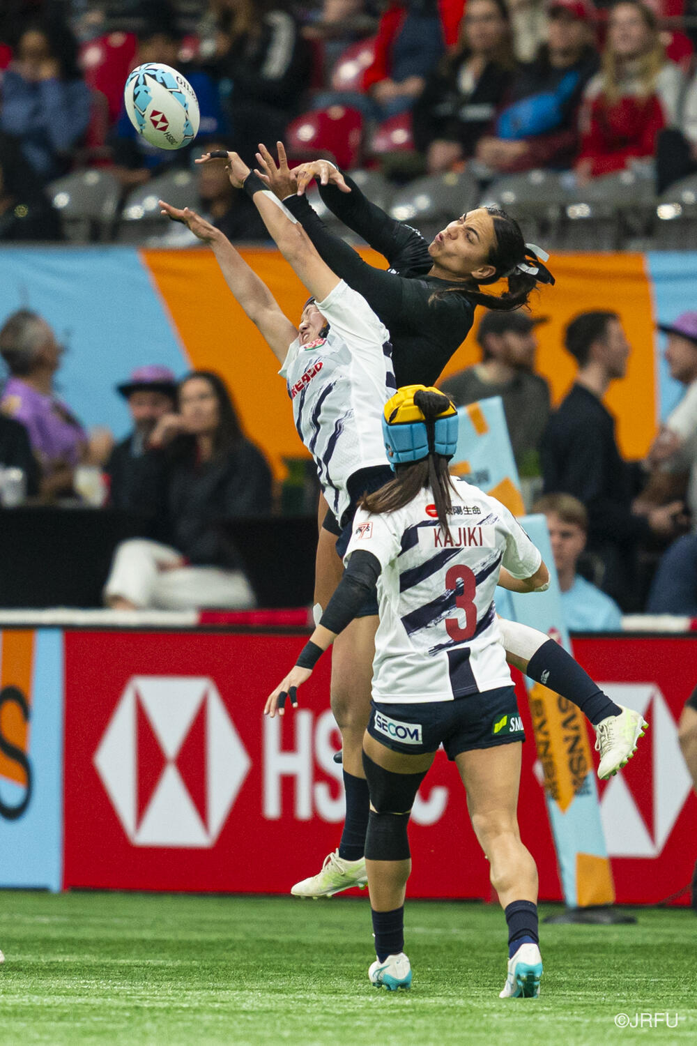 国内合宿で重点的に取り組んできたキックオフやディフェンスで成果が見られた一方、はじめの2試合はアタックを継続できず、ディフェンスの時間が長くなり、サクラセブンズの流れを掴むことができませんでした。しかし、第3試合では選手たち自ら気持ちを切り替え、開始直後から本来のサクラセブンズのラグビーを展開し、勝利を収めることができました。