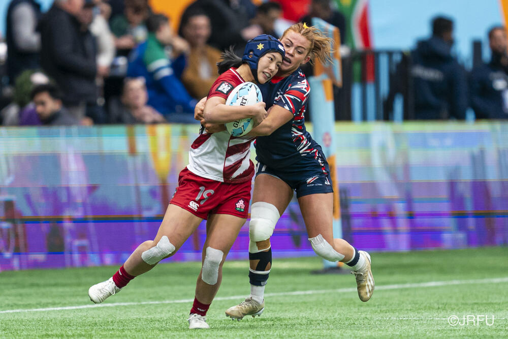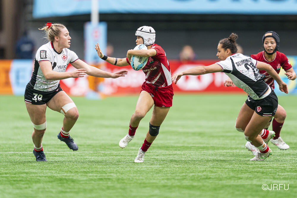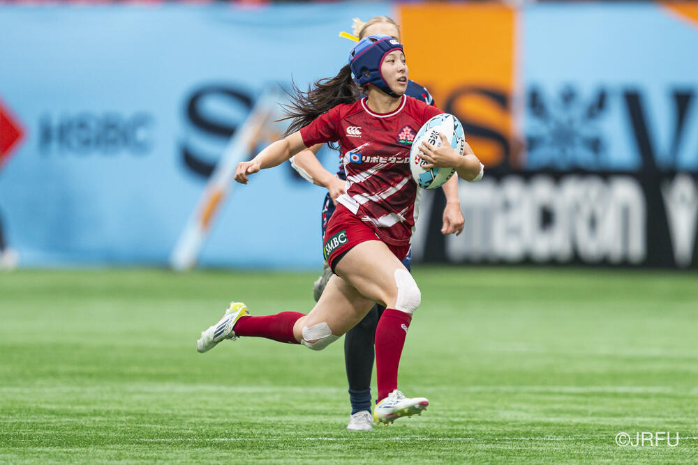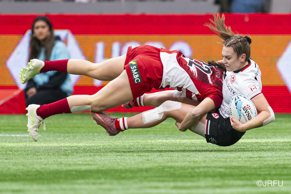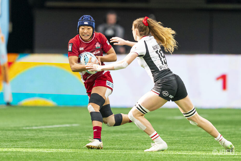 初戦のカナダ戦では、何度もチャンスを作るもののパスが繋がらず、トライを取り切れない時間が続きました。サクラセブンズらしいひたむきなプレーで一度は同点に追いつきましたが、最後はノータイムに逆転トライを許し、惜敗となりました。続く2試合目は、一人ひとりが強気かつ落ち着いたプレーを見せ、前半から着実にトライを量産。最終順位7位で大会を締めくくりました。