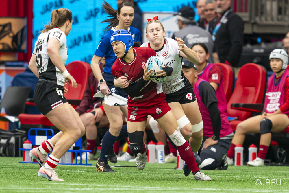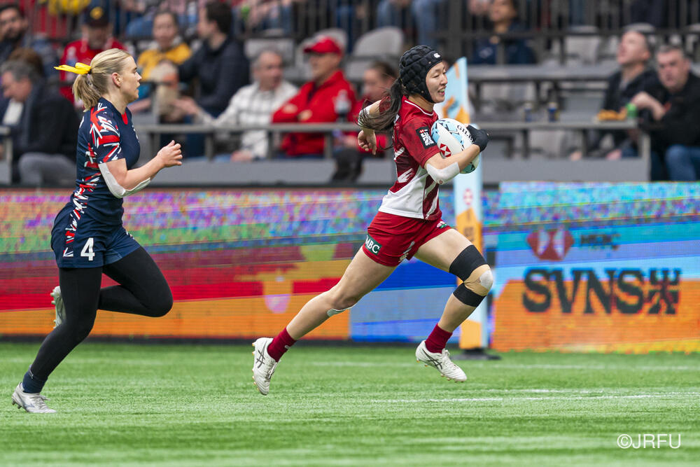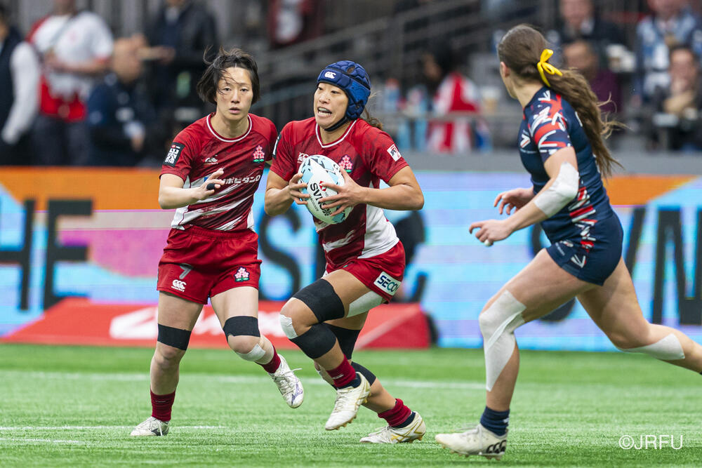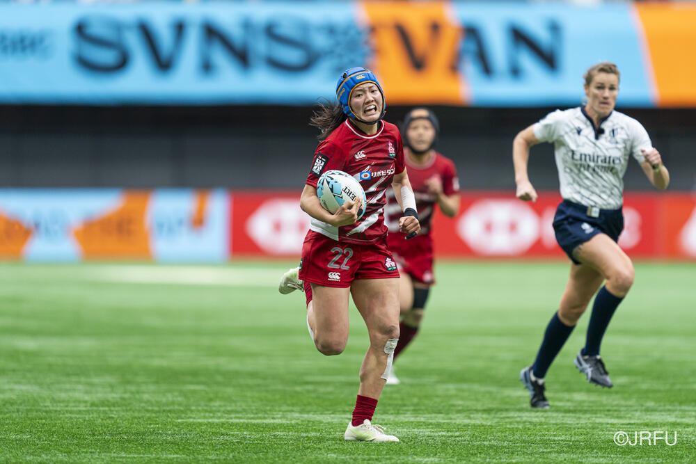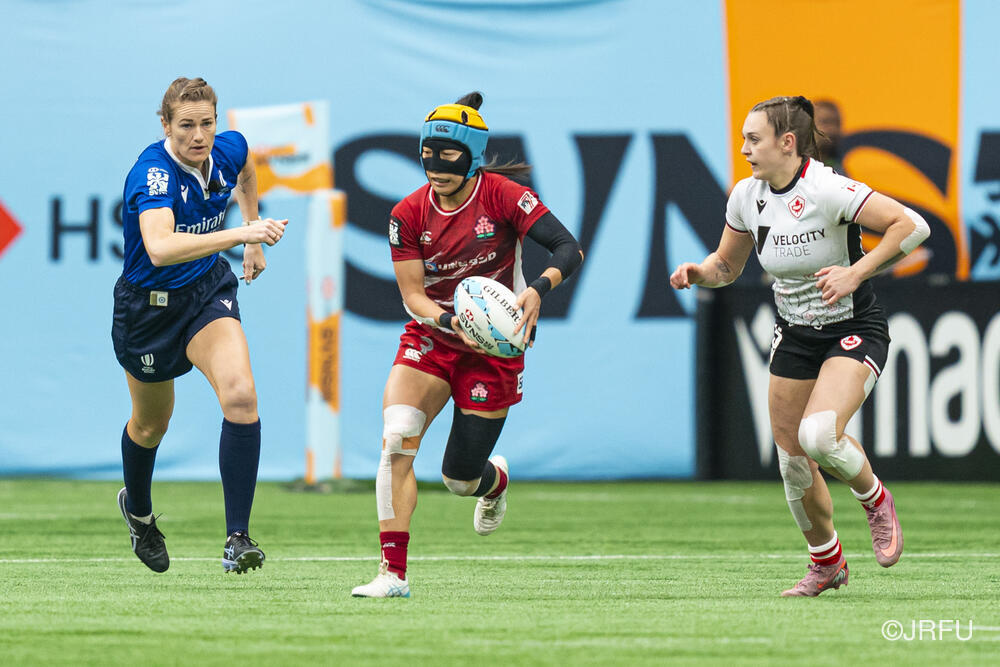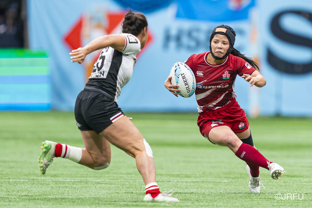 初戦のカナダ戦では、何度もチャンスを作るもののパスが繋がらず、トライを取り切れない時間が続きました。サクラセブンズらしいひたむきなプレーで一度は同点に追いつきましたが、最後はノータイムに逆転トライを許し、惜敗となりました。続く2試合目は、一人ひとりが強気かつ落ち着いたプレーを見せ、前半から着実にトライを量産。最終順位7位で大会を締めくくりました。