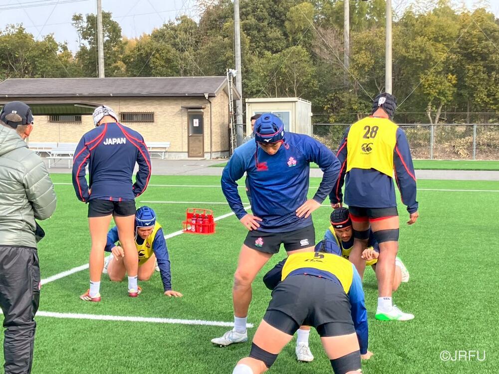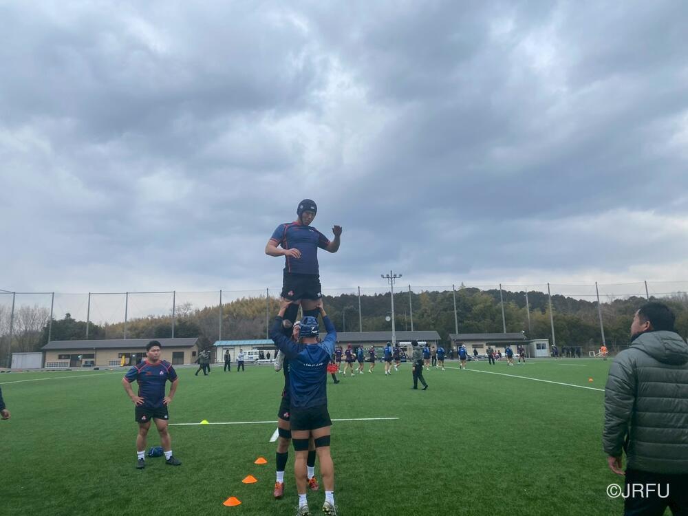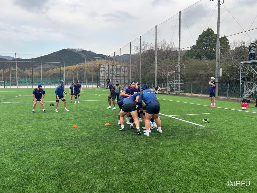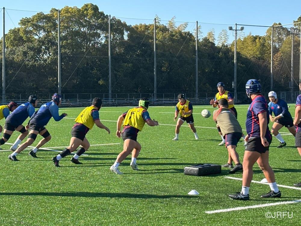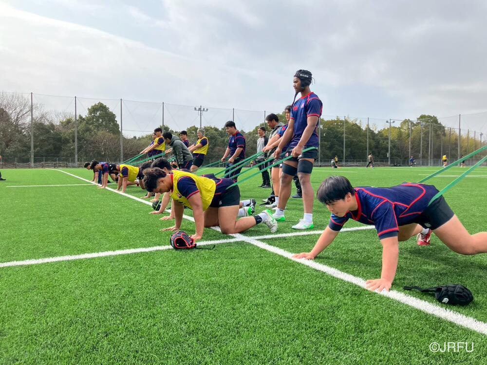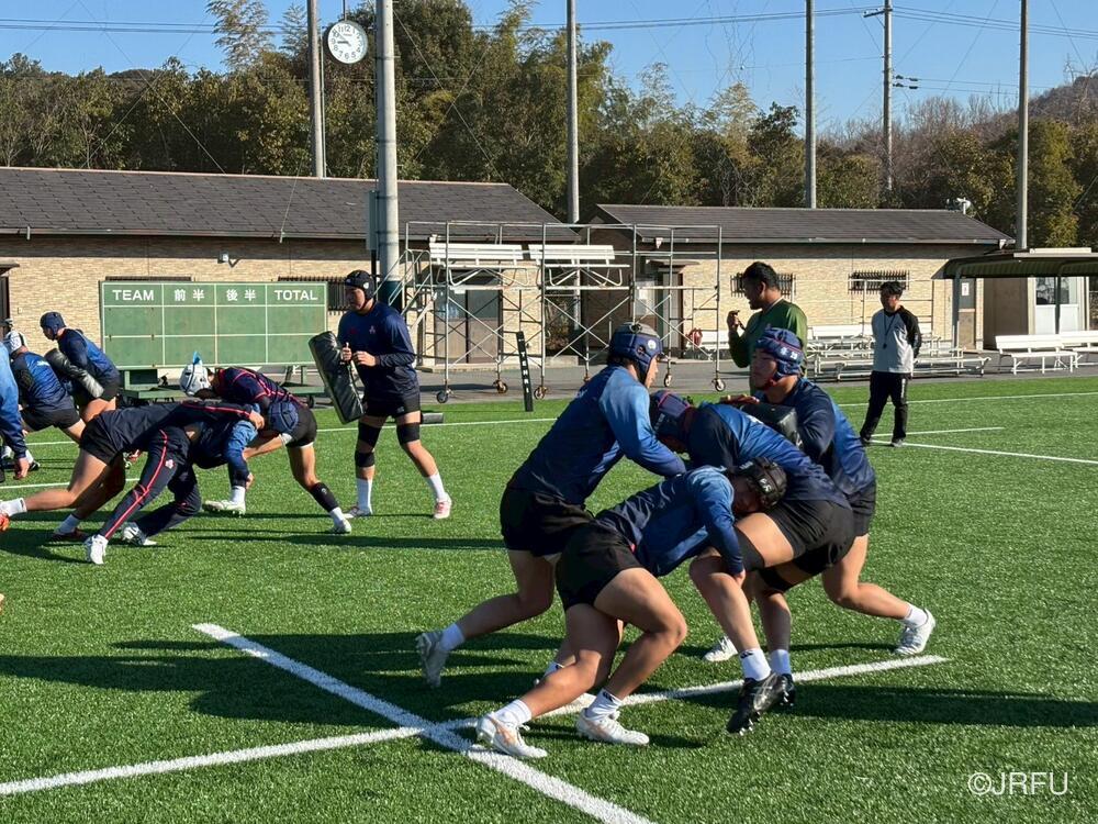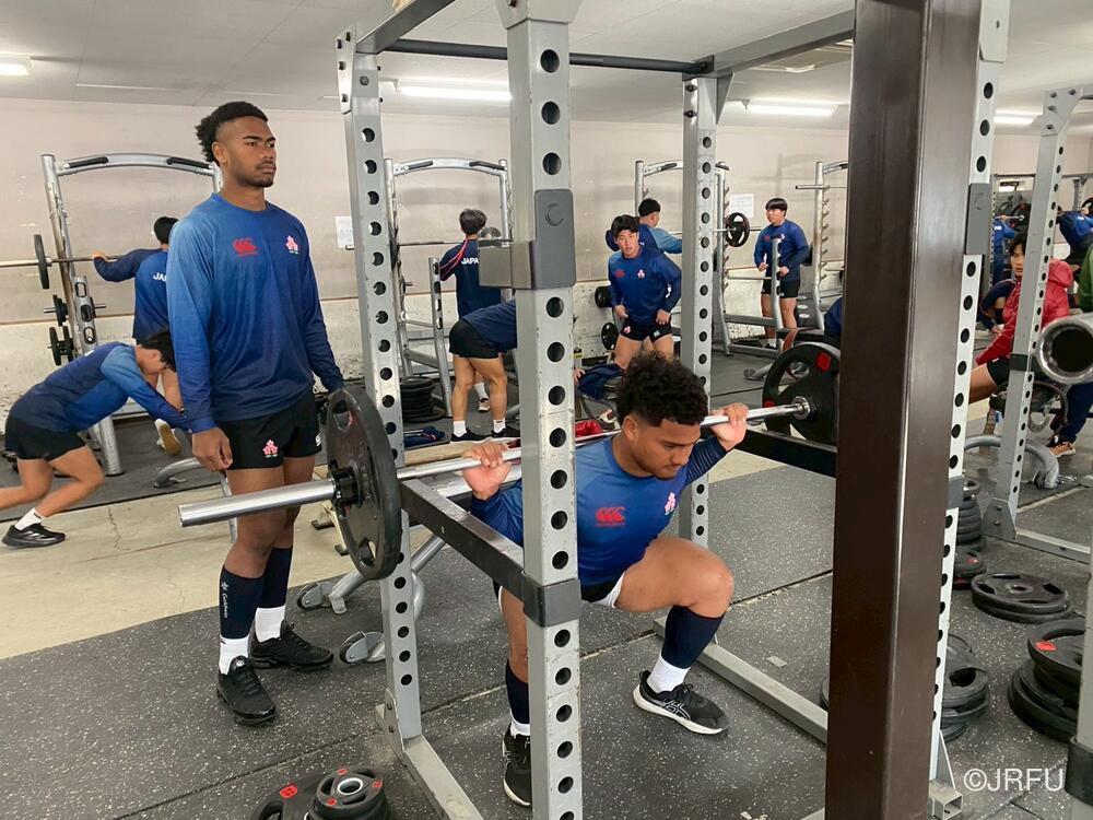 午後のスケジュールも、代表合宿らしい高強度な内容となり、15時20分から全体練習、FW・BKそれぞれのユニットセッション、IPP(個人スキル練習)を組み合わせ、個々のテクニック向上にも余念がありませんでした。練習の締めくくりには40分間のストレングストレーニングを行い、極限状態でのフィジカル強化を追求しました。