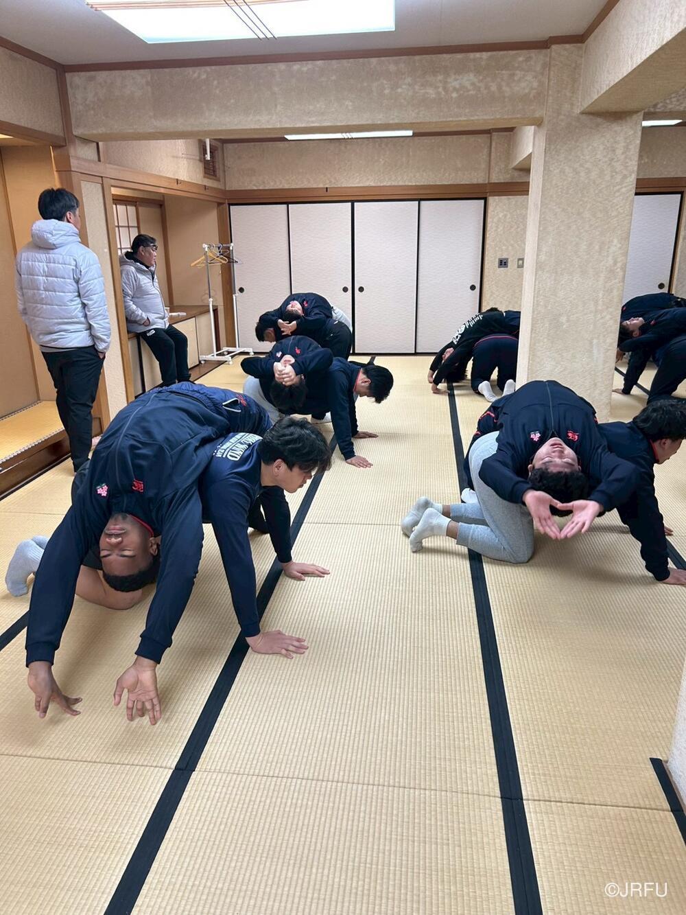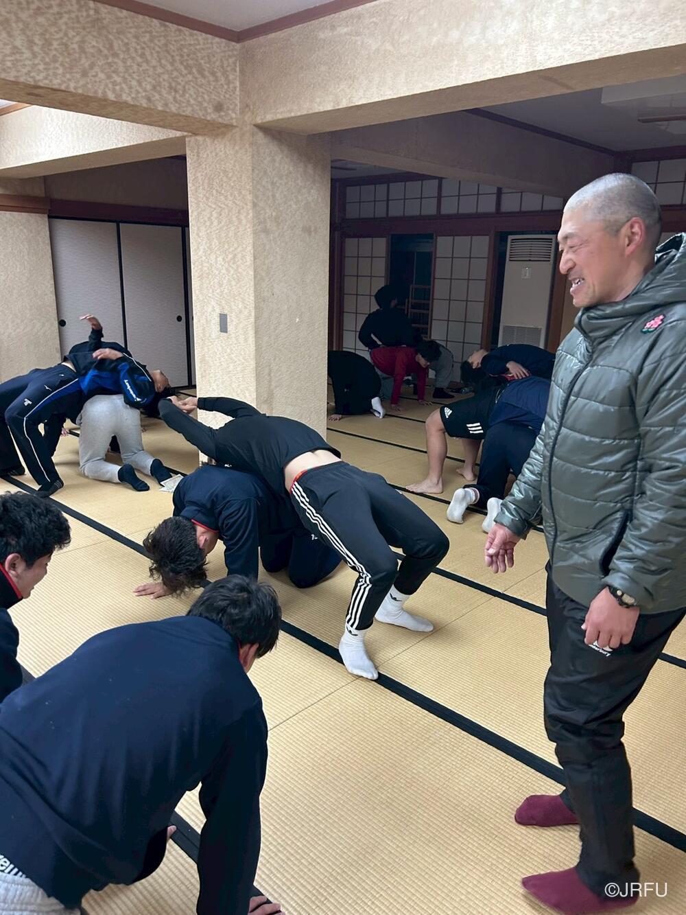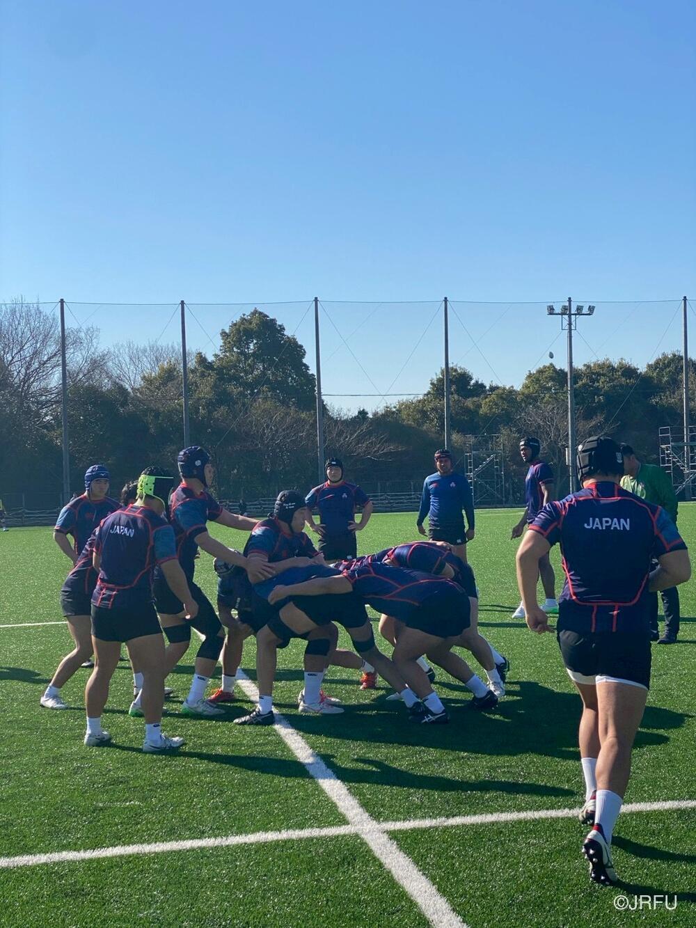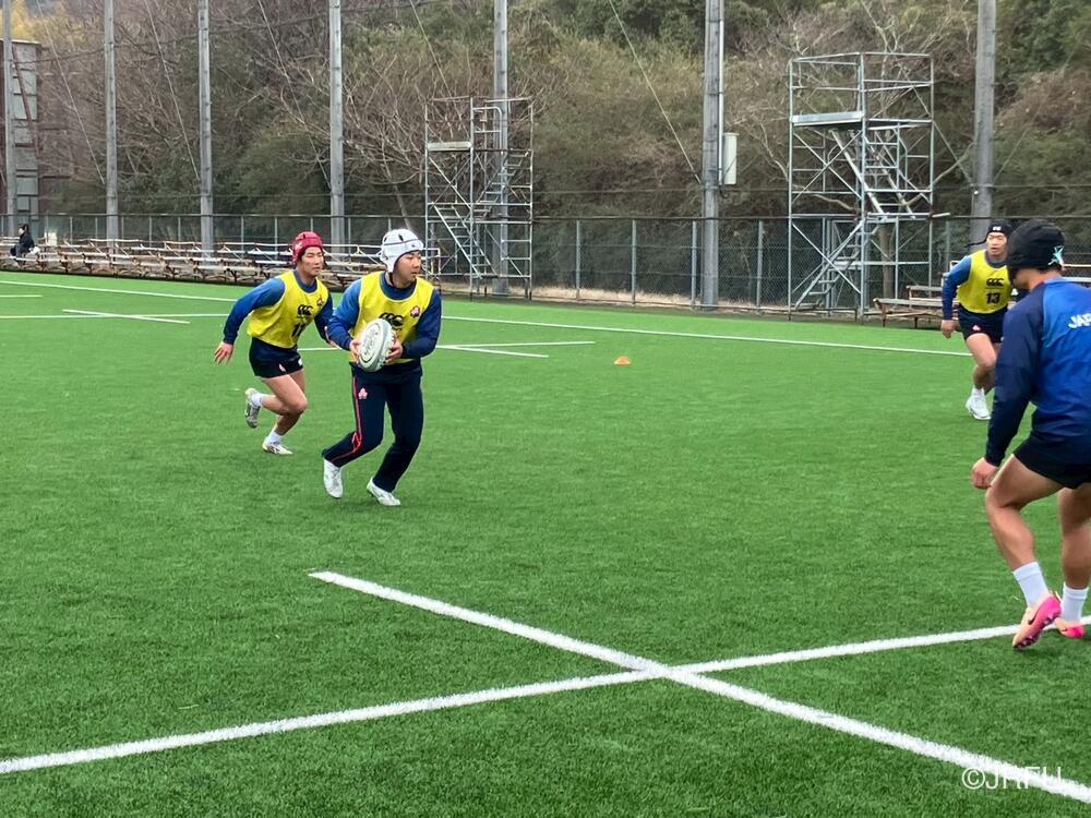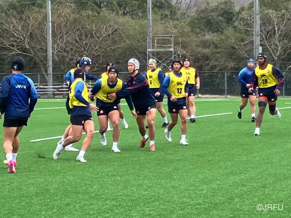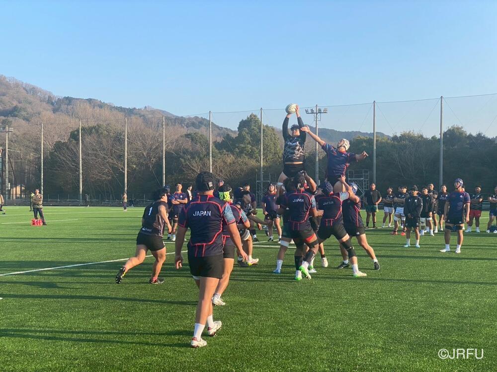 午後のスケジュールも、代表合宿らしい高強度な内容となり、15時20分から全体練習、FW・BKそれぞれのユニットセッション、IPP(個人スキル練習)を組み合わせ、個々のテクニック向上にも余念がありませんでした。練習の締めくくりには40分間のストレングストレーニングを行い、極限状態でのフィジカル強化を追求しました。