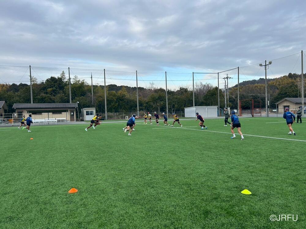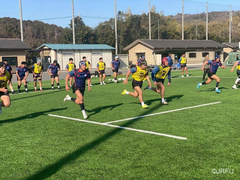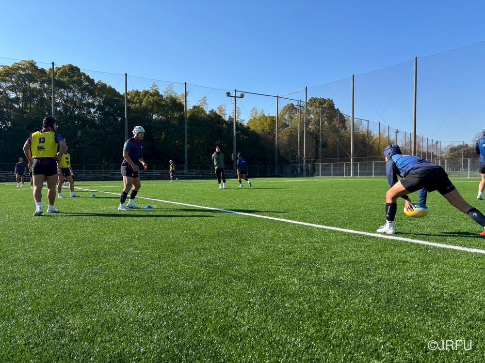 初日の練習はブロンコ測定から始まり、ユニット練習および全体練習(Team)では、単なるスキルの確認にとどまらず、アタック・ディフェンスの両局面における立ち位置や、プレーの優先順位といった細かな構造の再確認に多くの時間が割かれたまし。特にBKはIPP(個人練習)を交えながら個の役割を明確にし、FWはセットプレーから連動した動きの精度を追求。その後、全員で1時間のチームセッションを行い、共通認識をピッチ上で具現化させました。