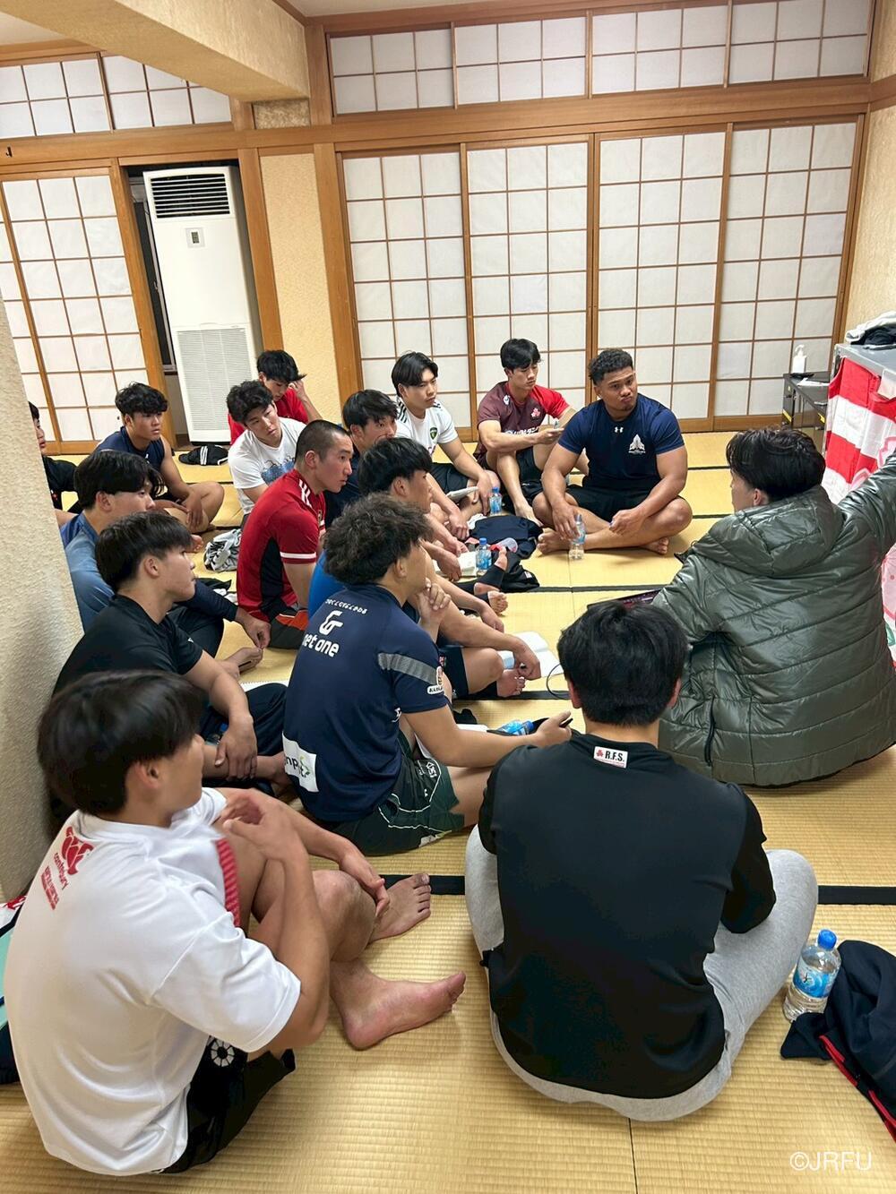 夜は練習映像を用いたチームミーティングや実戦での経験を言語化し、共有をしました。チームは初日とは比較にならないほどの連動性と、日本代表としての逞しさを備えつつあります。