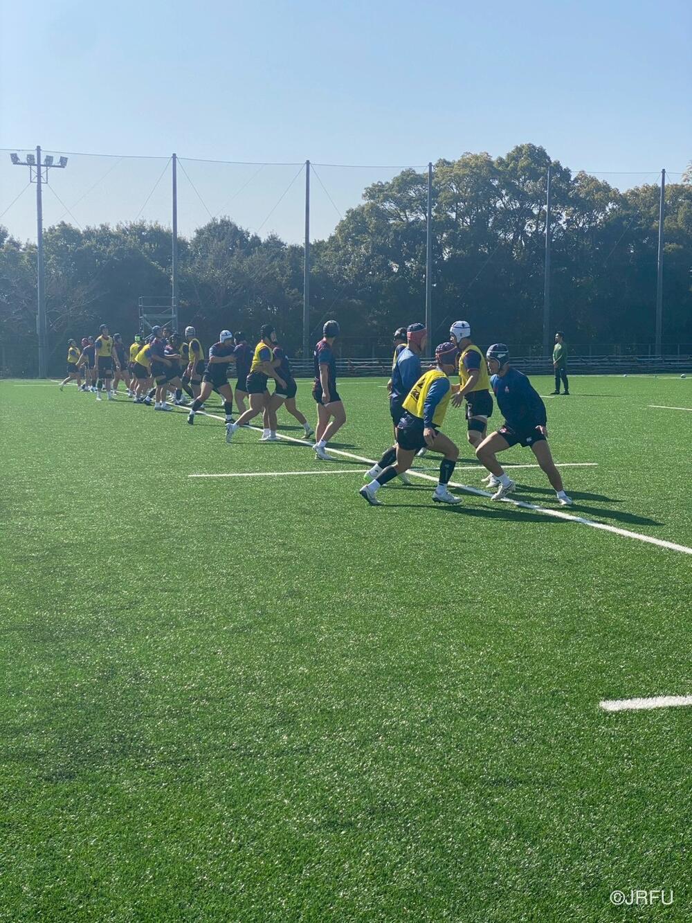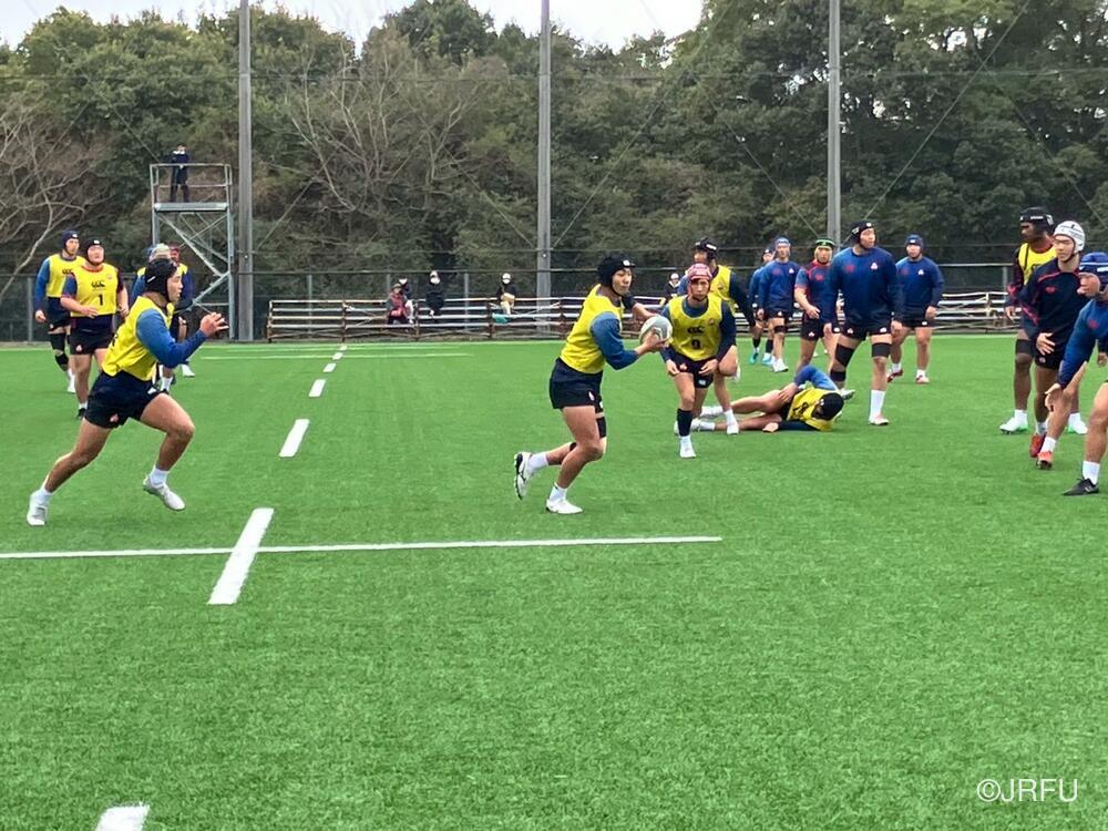 午前中のセッションは、フィジカルとユニットの強化が中心となり、8時40分からのストレングストレーニングで身体に刺激を入れた後、グラウンドではFW・BKに分かれたユニット練習を実施。前日に確認したチームの戦い方を、実戦に近い強度とスピードの中で再現することに主眼が置かれました。全体練習(Team)では、各ユニットで確認をしたピースを一つの組織として繋ぎ合わせ、集団としての機能性を高めていきました。