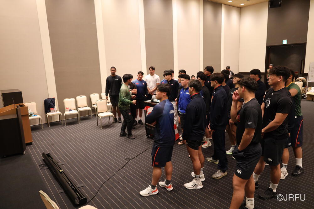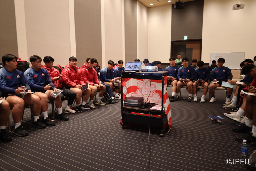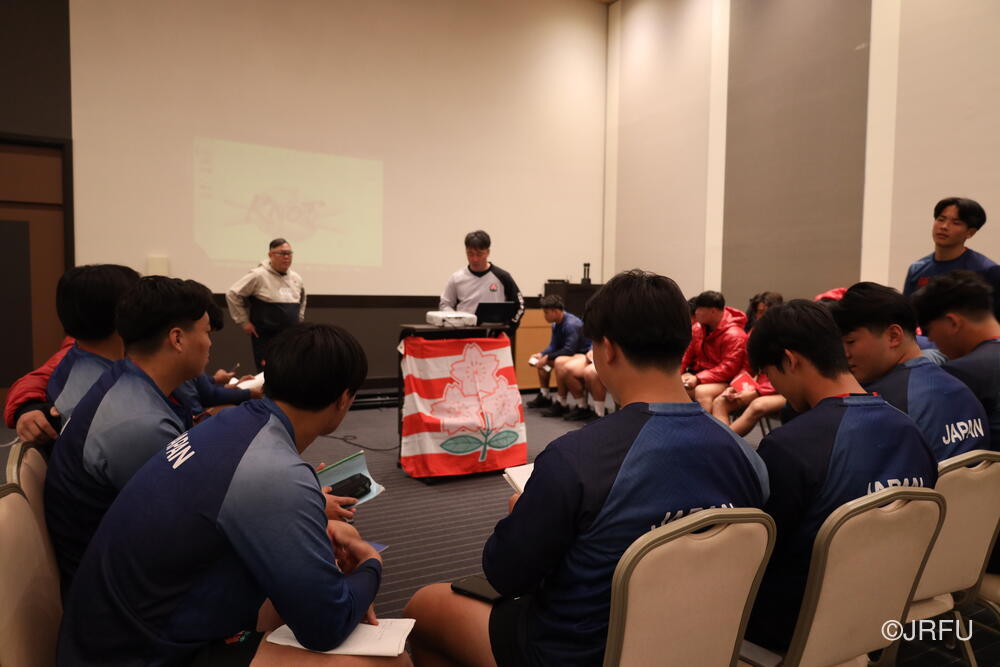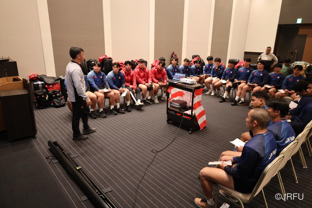 その後、開講式で髙野団長から決意をお話しいただきチームミーティングを行いました。これからの遠征に向け、チームのビジョンが全員で共有されました。
