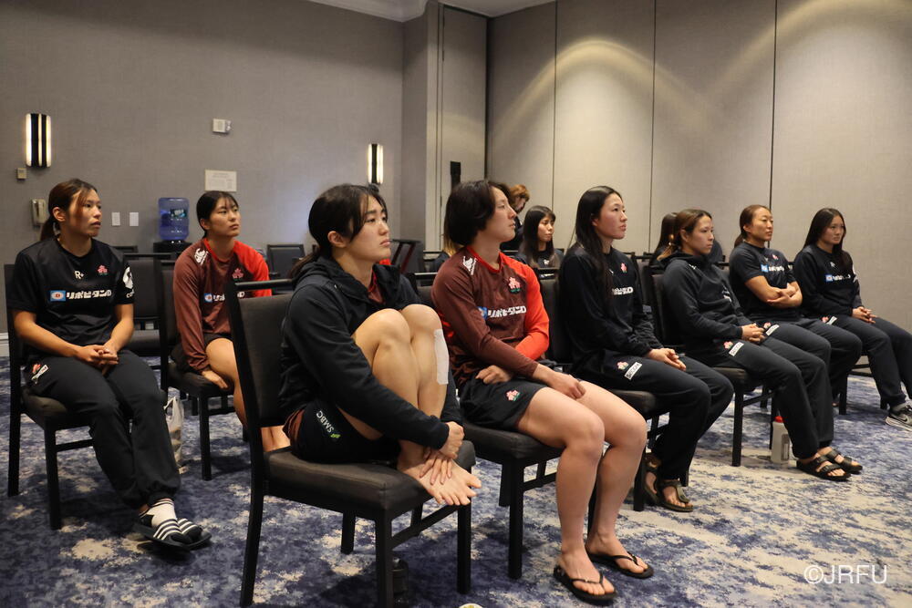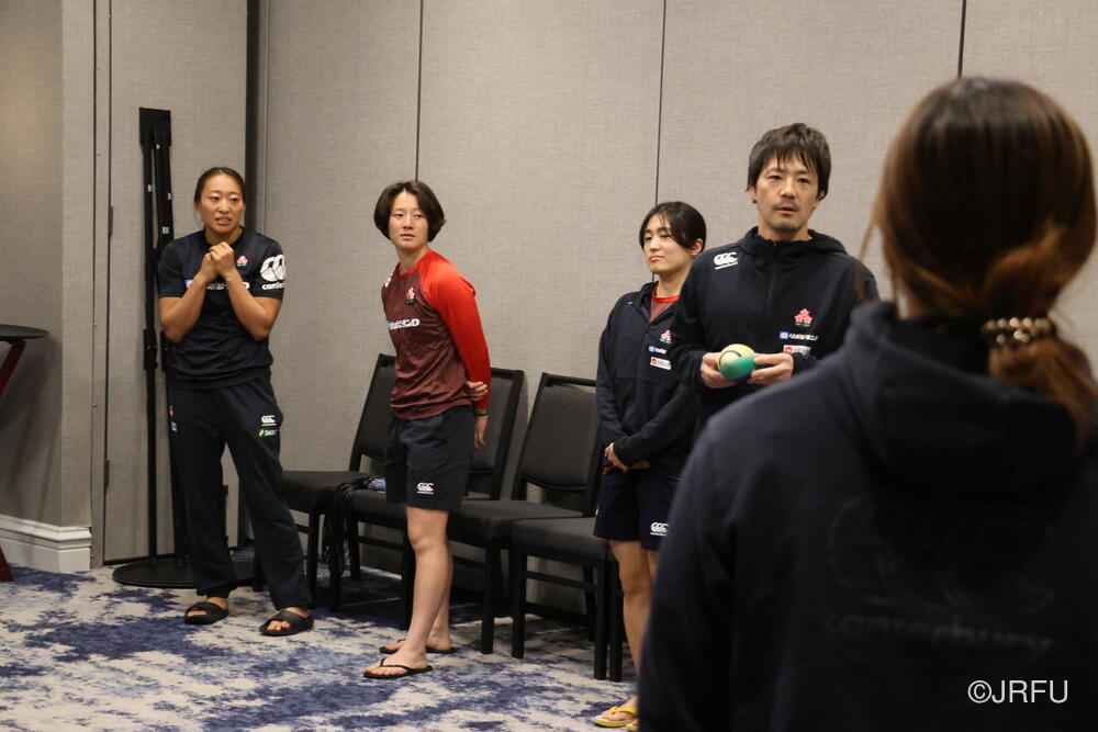 夕方には選手主導のミーティングを実施し、その後のチームミーティングへ。今シーズンとバンクーバー大会のスタッツ(統計データ)を昨シーズンと比較し、サクラセブンズの強み、進化、そして勝ち切るための課題を改めて共有しました。