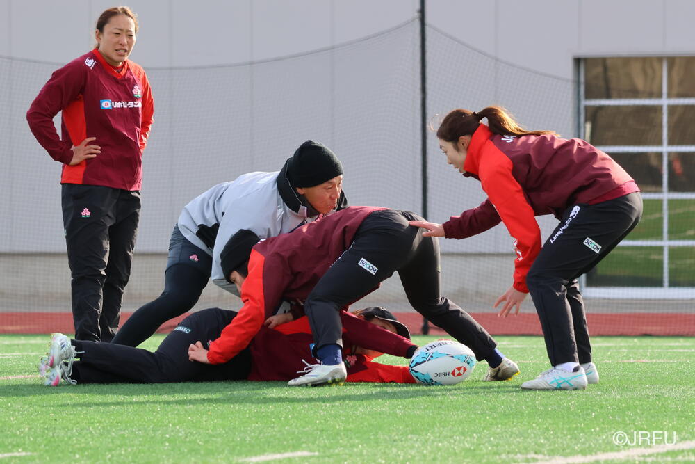 最後はボールゲームで心身ともにリフレッシュ。サクラセブンズらしい明るい雰囲気の中にも、チームのために必要な要求を互いに伝え合う、質の高い練習ができました。