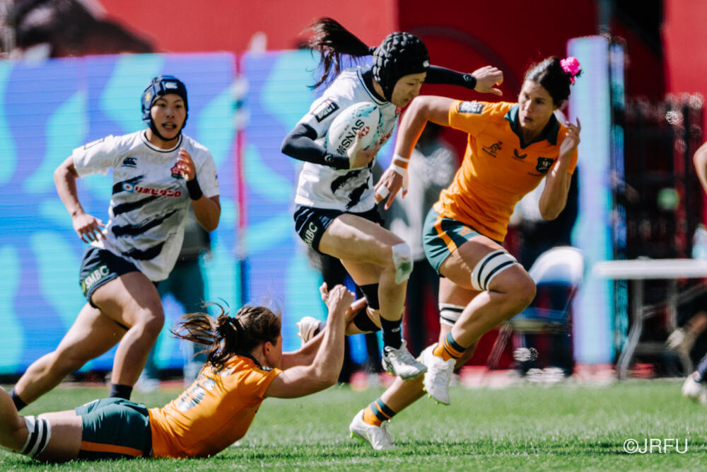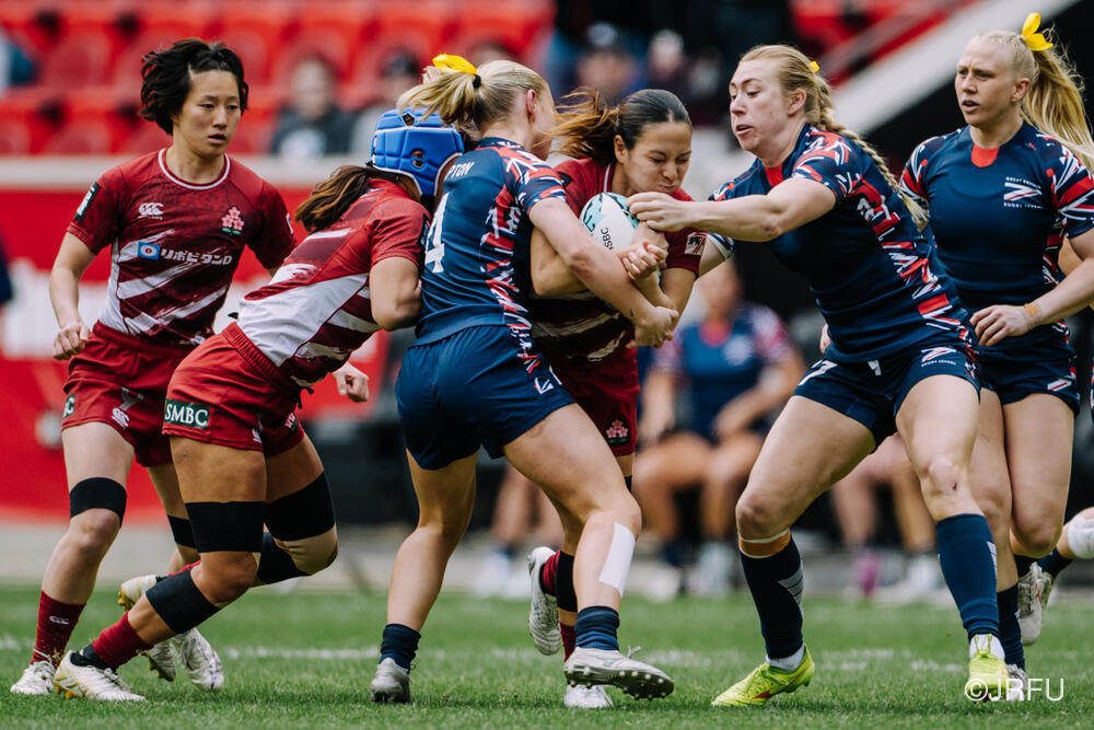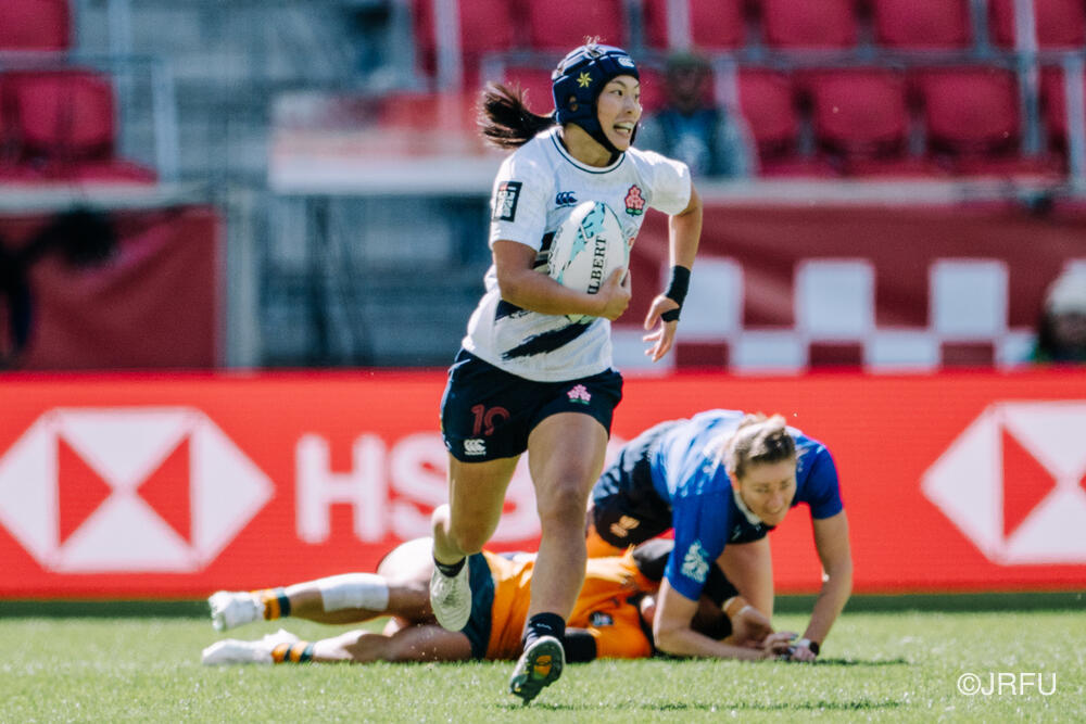 初めの2試合は、前回大会から進化した粘り強いディフェンスを見せたものの、アタックの1対1でサクラセブンズの強みを出し切れず、ターンオーバーからのカウンターで失点を重ねる苦しい展開となりました。しかし、本日最終戦はもう一度自分たちの強みを再確認し、一人ひとりがチームのために一瞬一瞬戦い、前回惜敗したカナダから勝利を掴み取ることができました。プール戦3位により、明日は5-8位トーナメントへ進みます。「ベスト4」という目標には届きませんでしたが、一つでも多くの勝利を積み重ね、明日は5位を目指して全員で戦い抜きます。引き続き、応援よろしくお願いいたします!