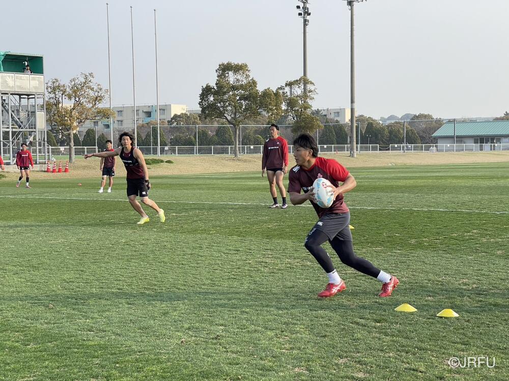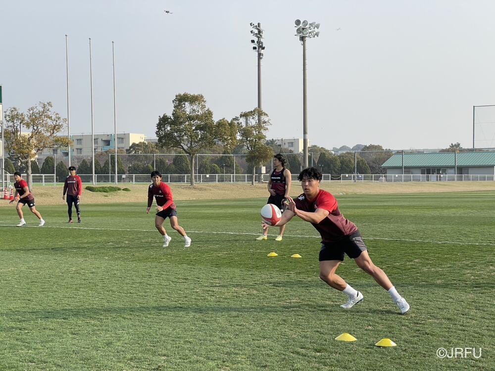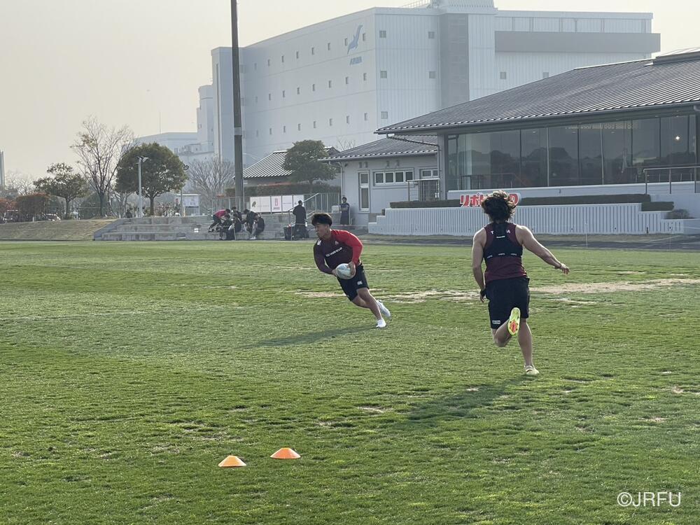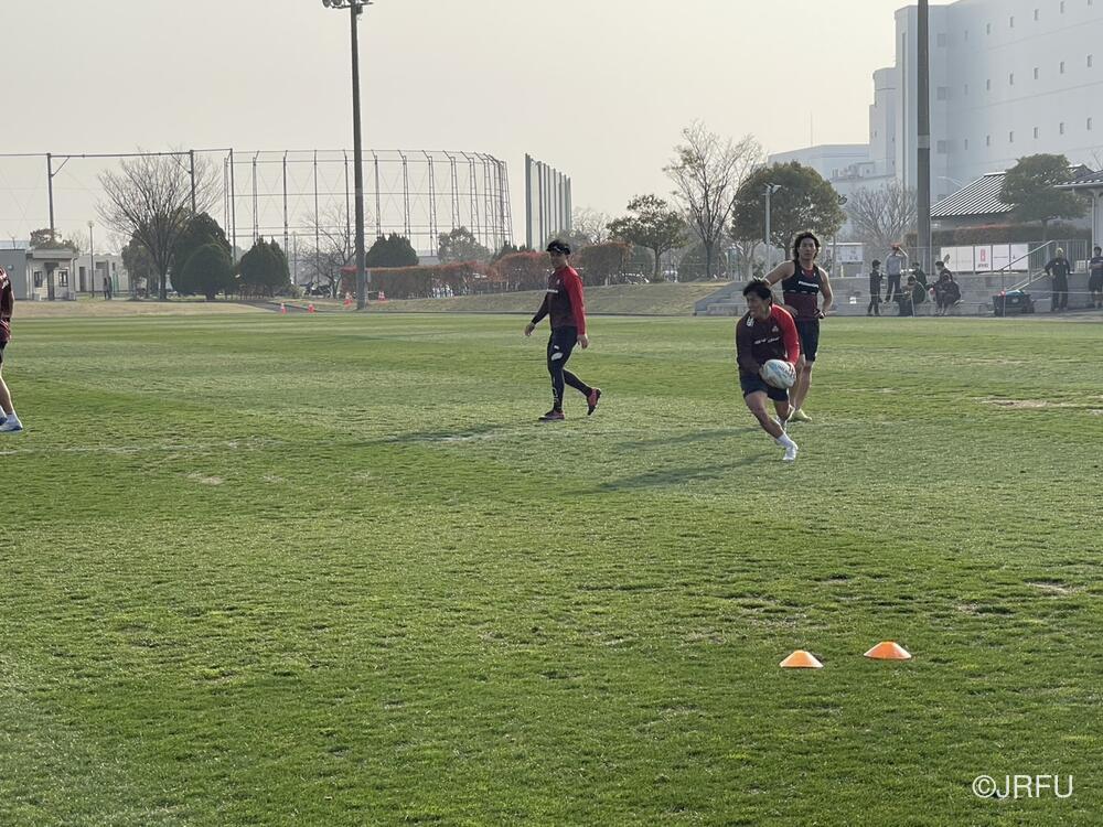 午後のグラウンド練習では、基本的なアタック動きの練習にフォーカスしました。ボリューム(反復数)を確保し、一つひとつの動きを確認していきました。 初めての内容の練習も交えつつではありましたが、狙いを理解して、その後すぐに質の高い動きを実行するなど、チームの課題への理解力の高さが見えるセッションとなりました。